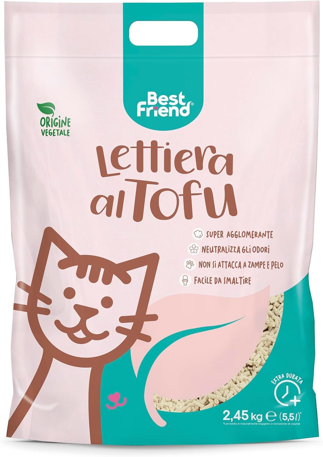 Die klumpende Katzenstreu Best Friend wird im Sinne von Recycling und Müllvermeidung ausschließlich aus Reststoffen der Lebensmittelproduktion hergestellt. Nach Gebrauch ist die Katzenstreu biologisch abbaubar und kann problemlos über die Toilette entsorgt werden. Best Friend ermöglicht dank eines natürlichen Agglomerators die Bildung kompakter Kugeln, die nicht an den Pfoten der Katze kleben bleiben. Die kompakten Pellets lassen sich leicht entsorgen, wodurch Abfall reduziert und Geld gespart wird – ein 5,5-Liter-Beutel reicht bis zu 30 Tage. Best Friend ist ein klassisches, agglomerierendes Katzenstreu, das in verschiedenen Größen erhältlich ist, um den Bedürfnissen von Besitzern und ihren Tieren gerecht zu werden. Dank innovativer Technologie neutralisiert diese Einstreu effektiv unangenehme Gerüche, indem sie die für die Gerüche verantwortlichen Moleküle einfängt und blockiert und so eine angenehme Frische in die Luft abgibt.