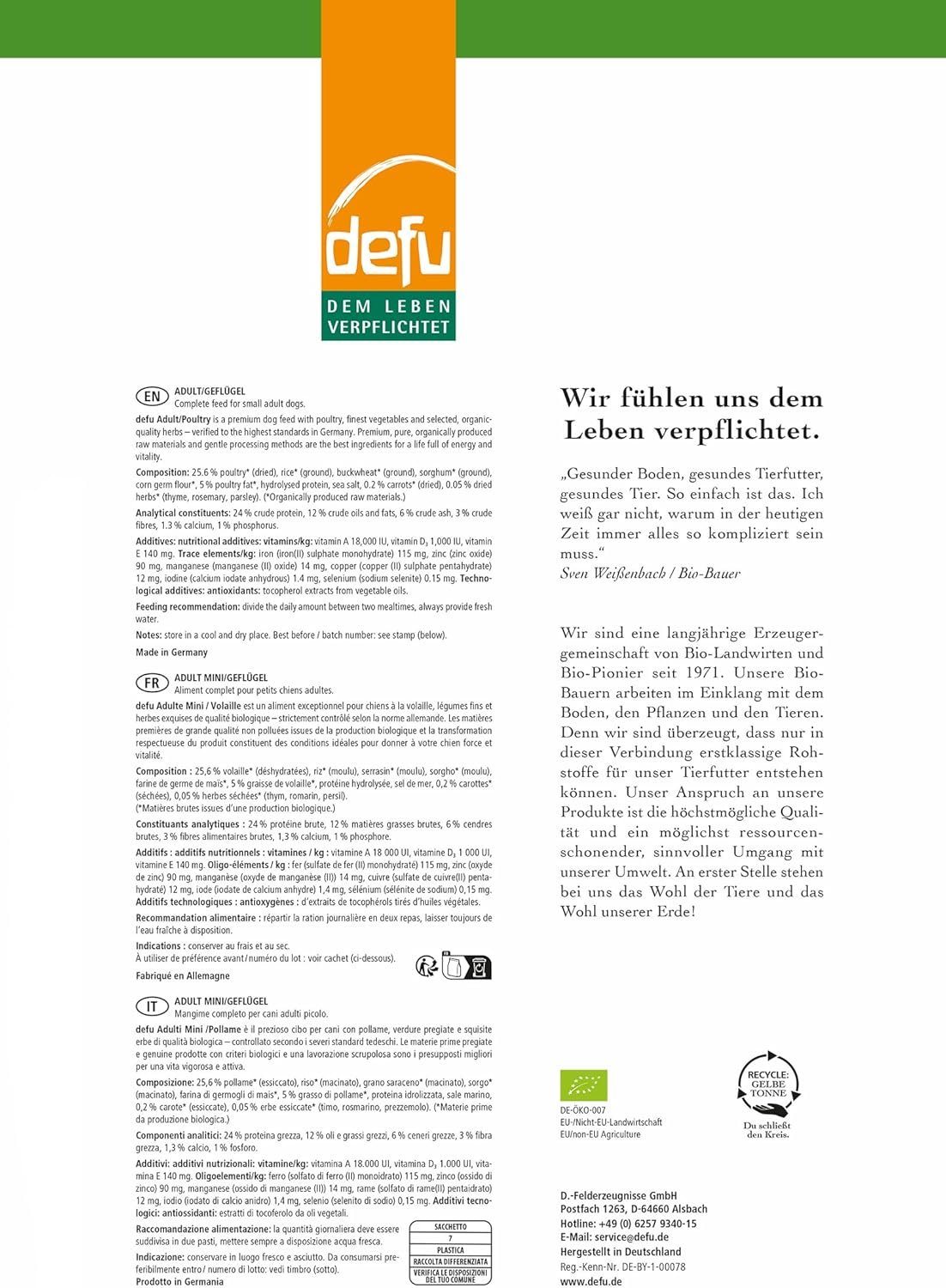 Hergestellt in Deutschland. Bio aus Überzeugung! Mit Sorgfalt in Deutschland hergestellt.