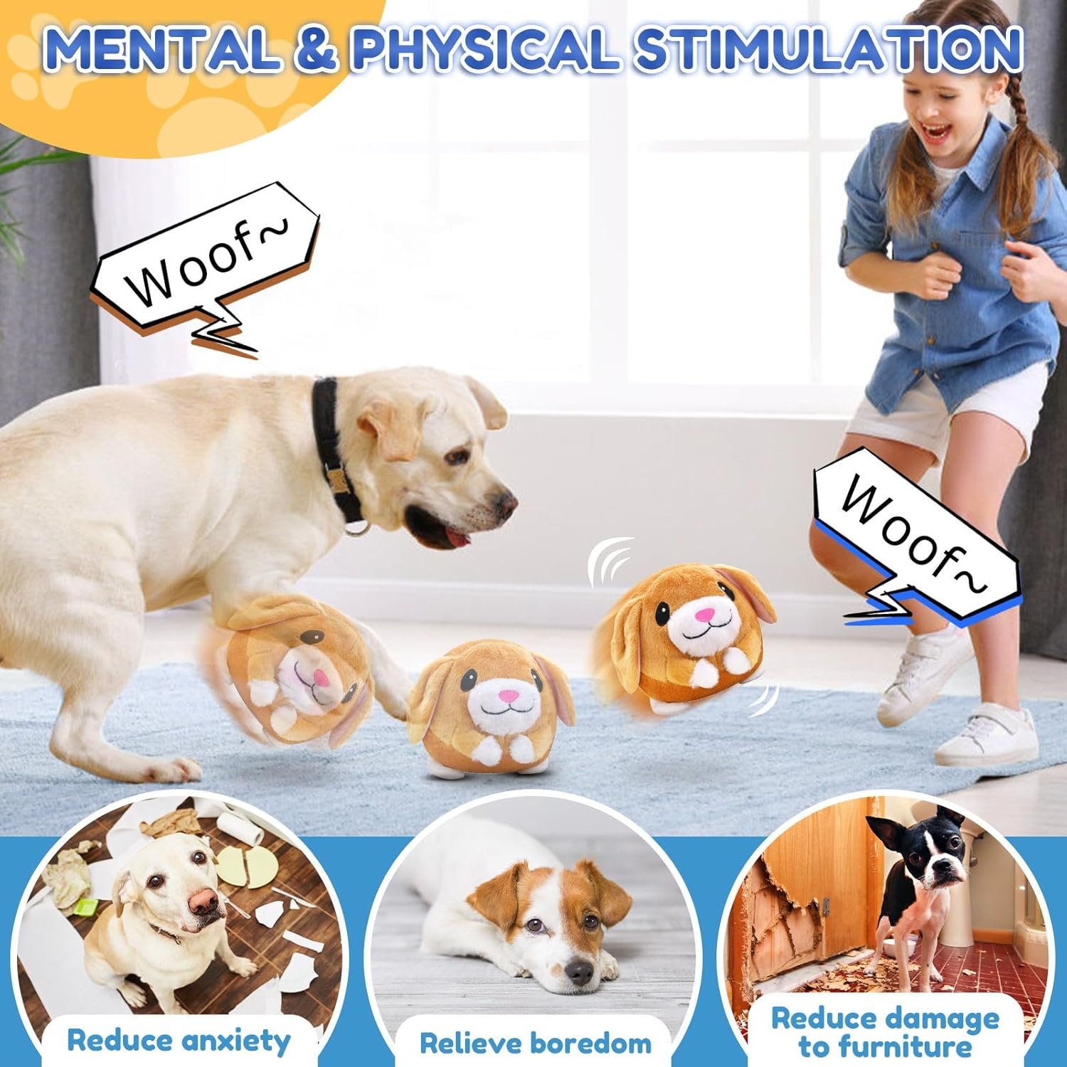 Dieses bewegliche Plüschtier für Haustiere verfügt über ein vielseitiges Design, das mit seinen realistischen Hundegeräuschen und seiner Sprungbewegung die Aufmerksamkeit Ihres Hundes auf sich zieht.