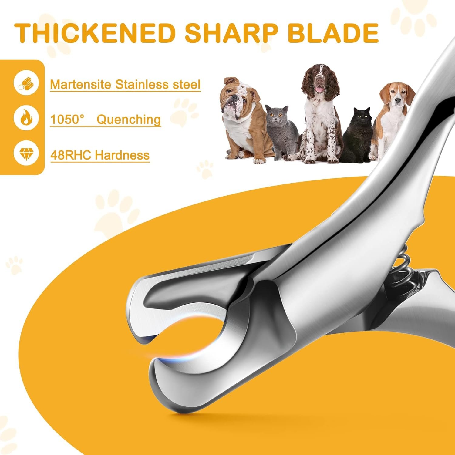 Passt sich der Nagelkrümmung im Besatz an, sodass das Haustier die Nägel klar sehen kann, um ein Schneiden in die Blutlinie des Haustiernagels zu verhindern und Haustiere immer zu verletzen