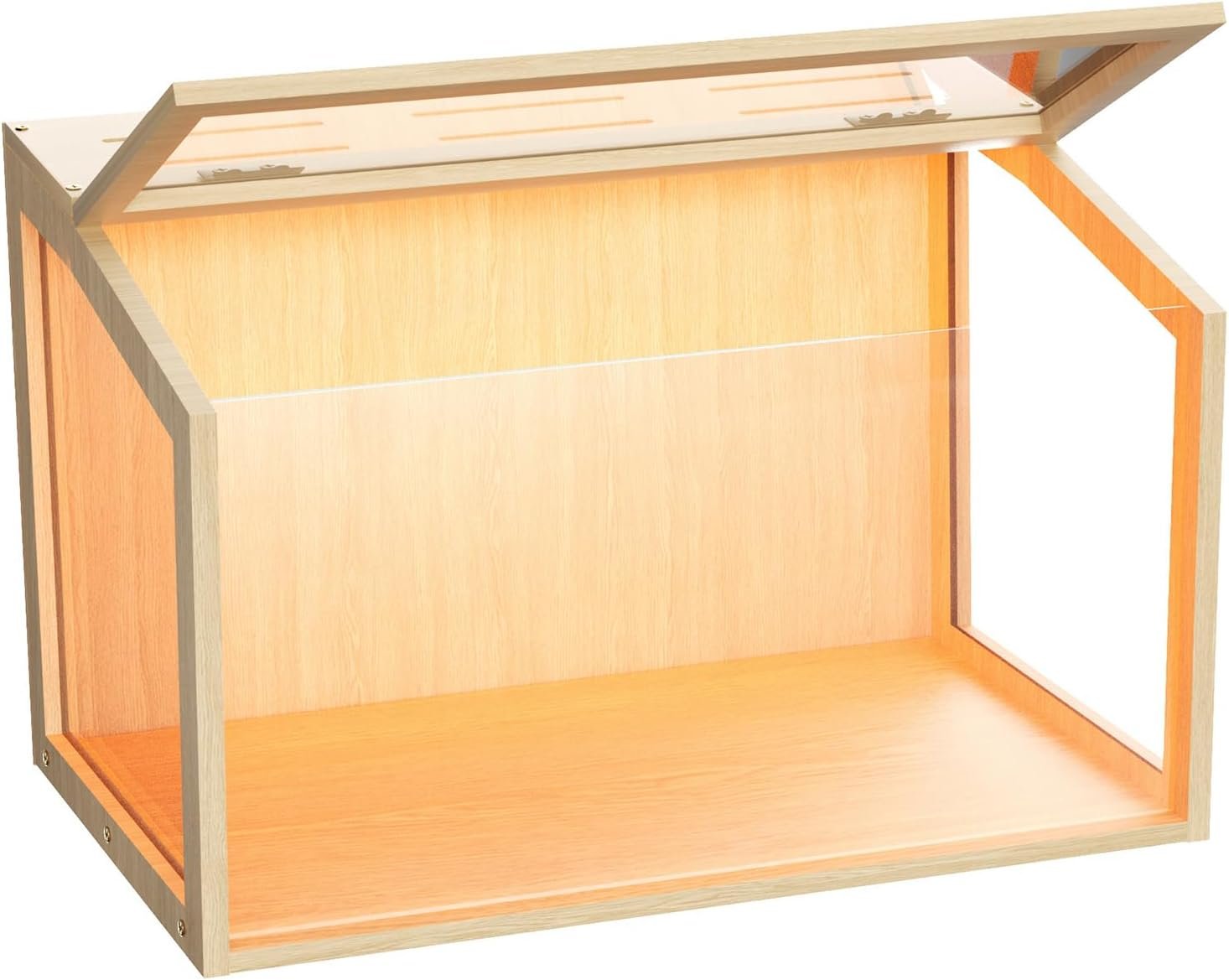 Ausstattung: großzügige Bodenfläche für Einstreu, verschiedene Ebenen für Futterplätze und Rückzugsmöglichkeiten