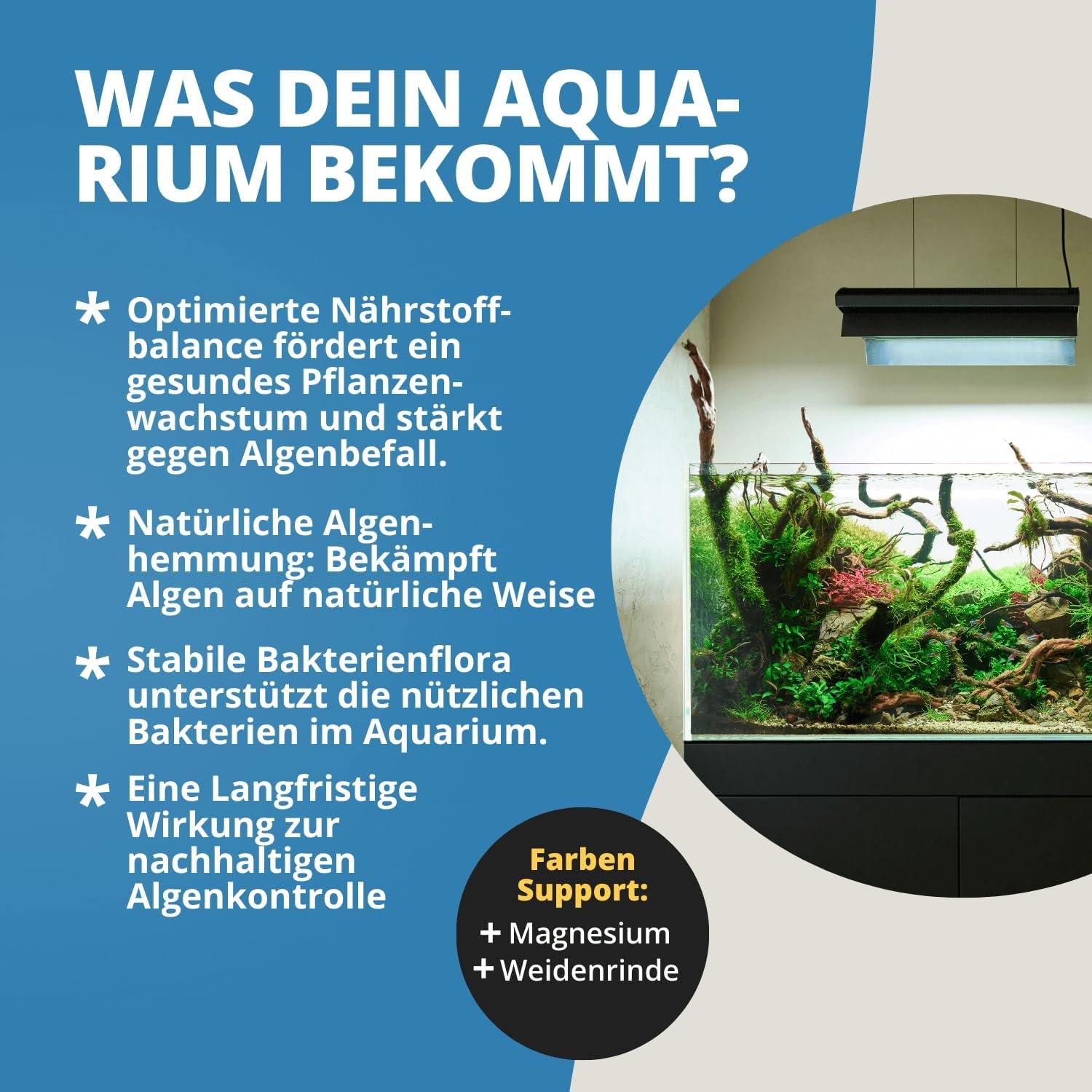 Wasserqualität und Pflanzengesundheit fördern: Das Produkt verbessert die Wasserqualität und unterstützt das Pflanzenwachstum, wodurch das Aquarium weniger anfällig für Algen wird. Es stärkt das natürliche Gleichgewicht im Aquarium-Ökosystem und fördert gesunde Pflanzen.