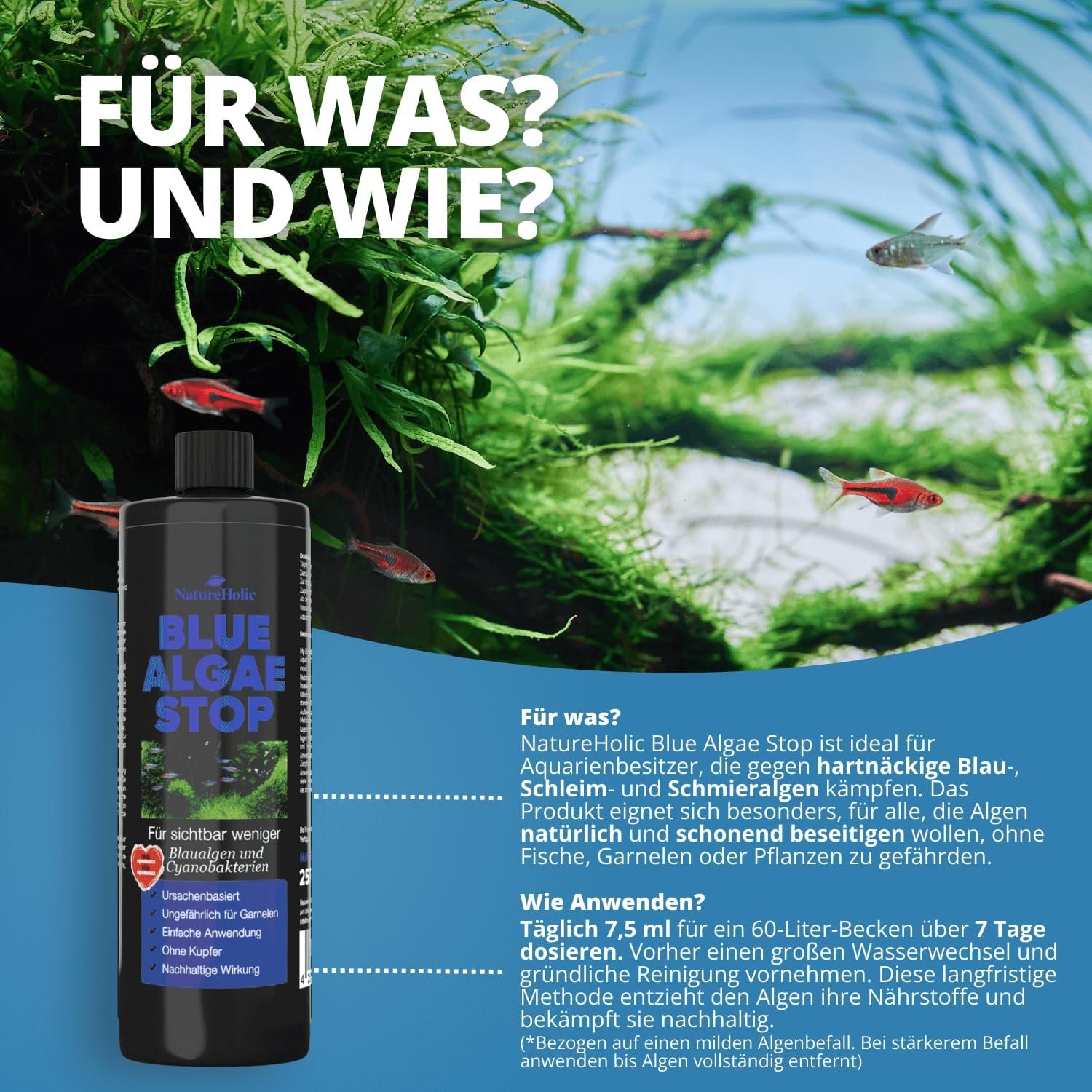 Einfache Anwendung: Blue Algae Stop ist einfach in der Anwendung und kann vorbeugend zur Vorbeugung von Algenproblemen eingesetzt werden. Nach der Aquarienreinigung wird es 7 Tage lang dem Wasser zugesetzt, um nachhaltige Ergebnisse zu erzielen.