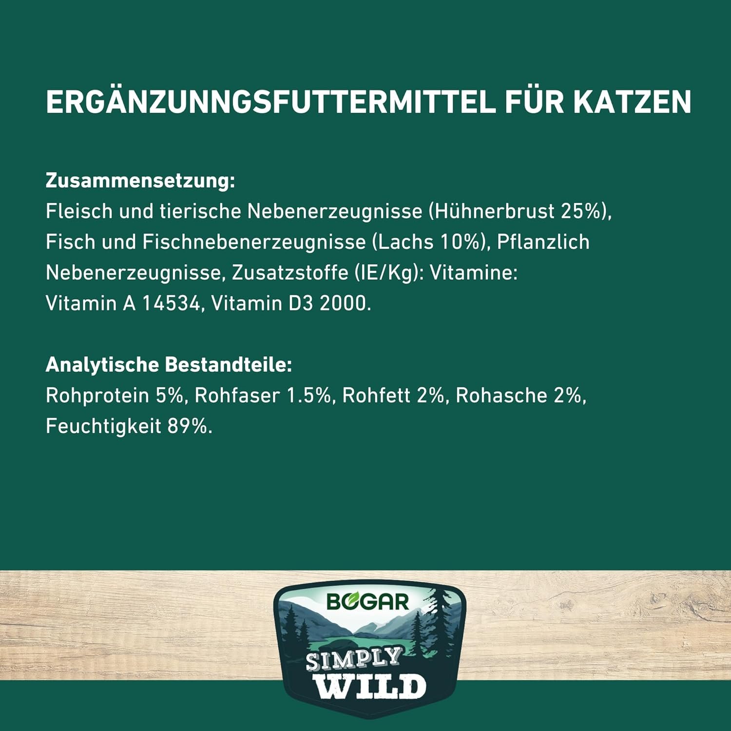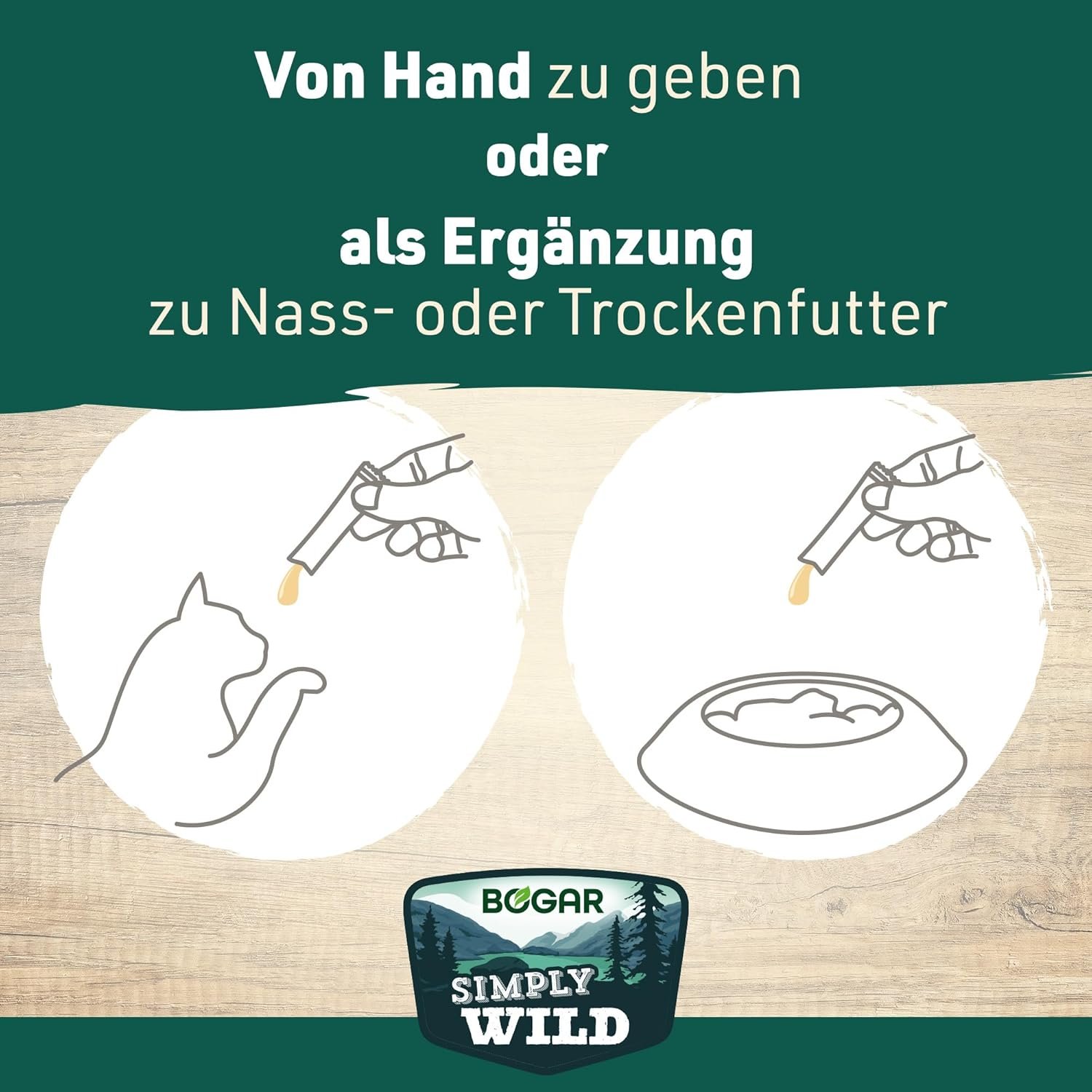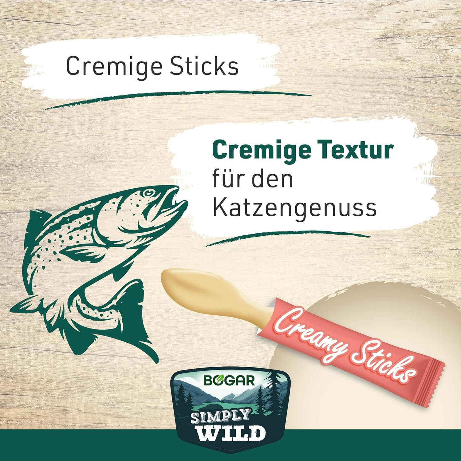 Katzensnacks mit Lachs: Simply Wild von Bogar bietet cremige Katzensnacks mit leckerem Lachs. Diese leckeren Katzensticks sind ideal für Katzen jeder Größe und fördern als Ergänzung zum Katzenfutter eine gesunde Ernährung.