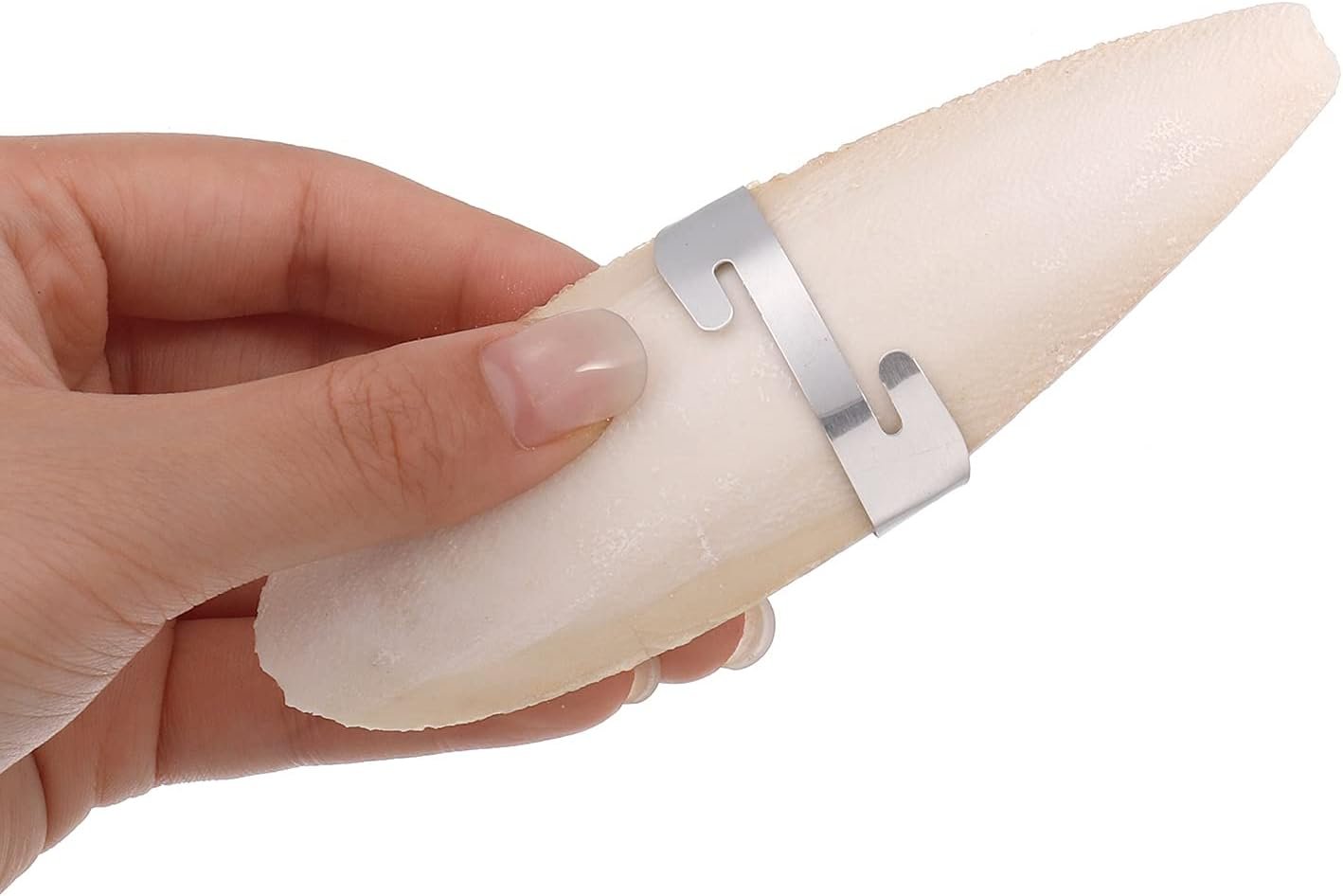 Lieferumfang: Unser Paket enthält 4 Stück natürliche Tintenfischknochen, jedes Stück ist ca. 12-14 cm lang. Es gibt auch 2 Metallschnallen, um das Cutlebone am Vogelkäfig zu befestigen, was für Vögel praktisch ist, um zu beißen.