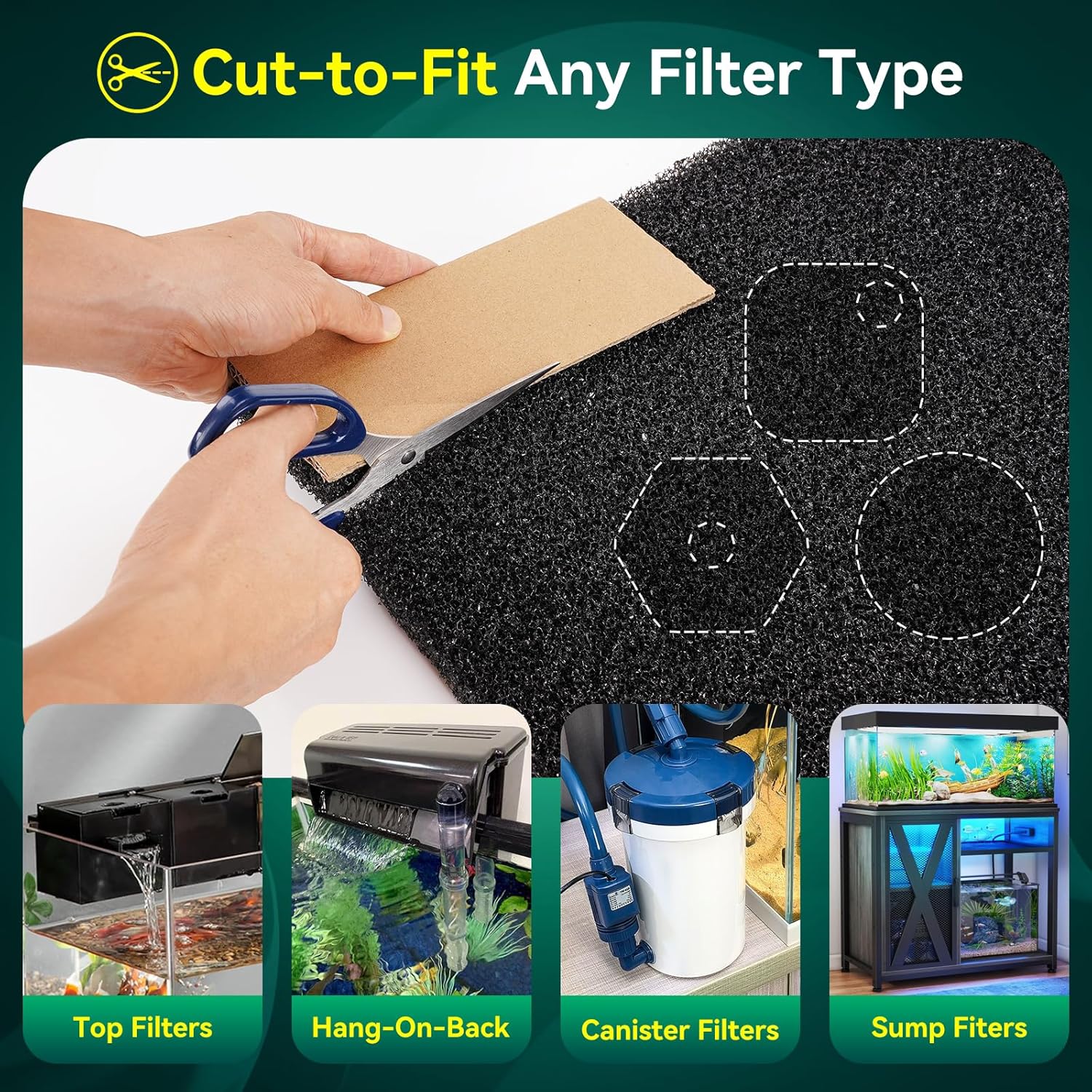 ✅ EINFACHE ANWENDUNG Geeignet für alle Filtergrößen und -typen, einfach genau auf die gewünschte Größe zuschneiden und in das Filtersystem einsetzen.