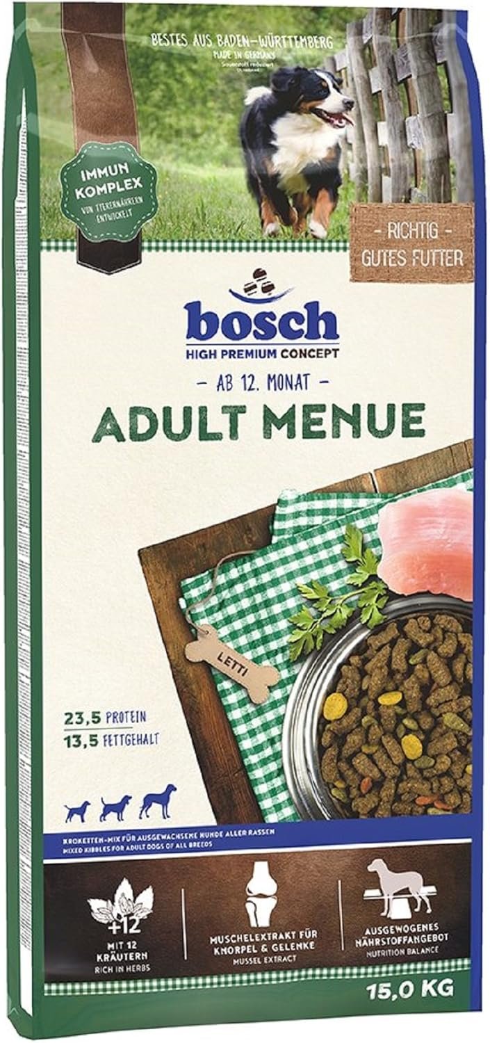 Verwöhnen Sie Ihren Hund mit ADULT MENUE, dem hochwertigen Alleinfuttermittel für Hunde mit normaler Aktivität.