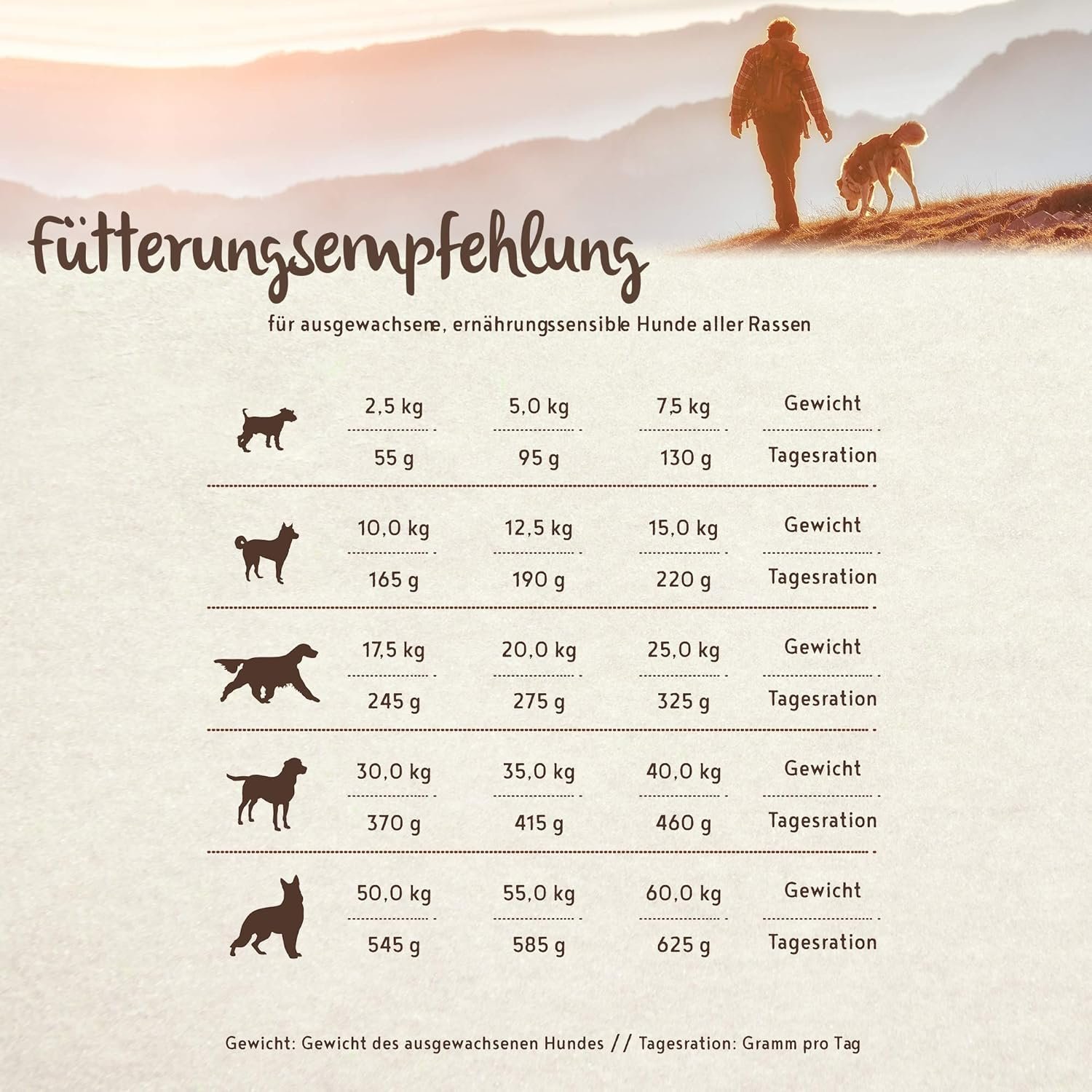 Unser abgerundetes Ernährungsprogramm ist für Hunde aller Rassen sowie ernährungssensible Hunde geeignet.