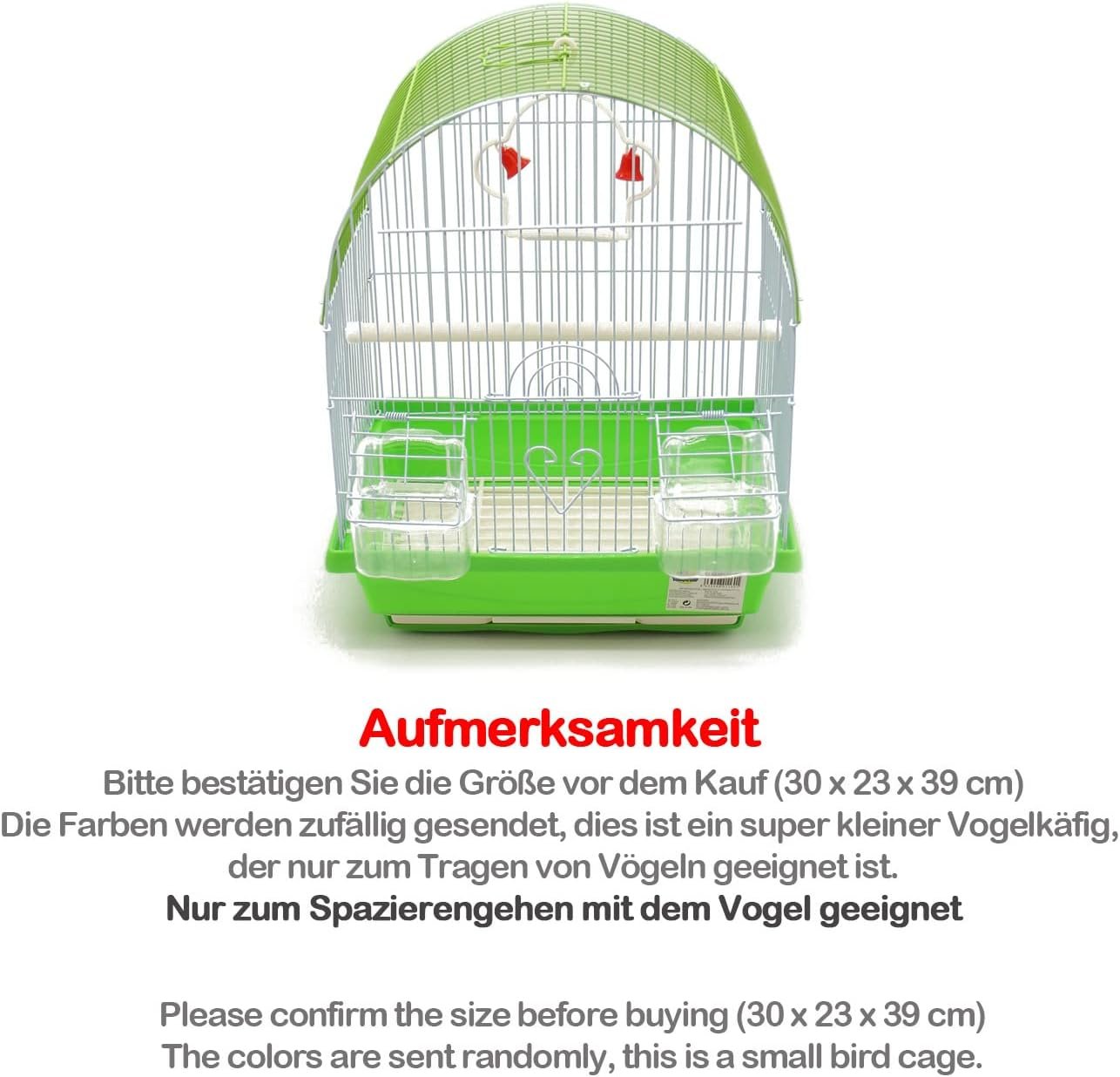 Abmessungen: 30 x 23 x 39 cm. Zufällige Farbe. Bitte bestätigen Sie die Größe vor dem Kauf, die Farbe wird zufällig ausgewählt, der Käfig ist nicht groß, er wird zum Tragen von Vögeln und für Spaziergänge im Freien verwendet.