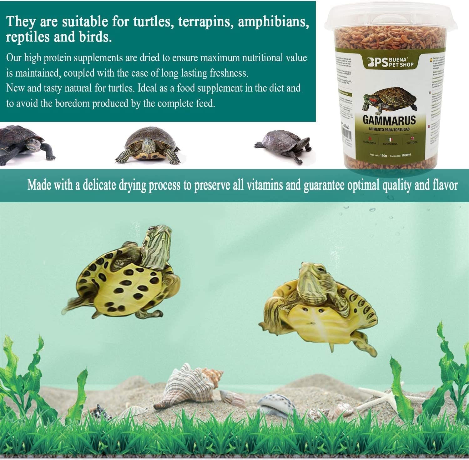 Neu und lecker natürlich für Schildkröten. Ideal als Nahrungsergänzung und gegen Langeweile bei Alleinfuttermitteln.