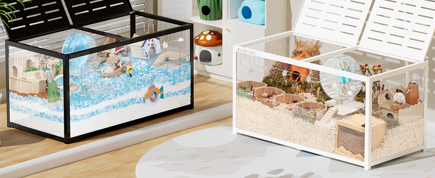 BITT-resistenter und robuster Hamster Nagarium: Aus eingedicktem, klarem Acrylplatten und einem bissresistenten Metallrahmen eignet sich dieser Gnom-Hamsterkäfig perfekt, um Ihren kleinen Escaper sicher zu halten. Mit vier Ansichtsfenstern können Sie Ihr Haustier jederzeit problemlos beobachten.