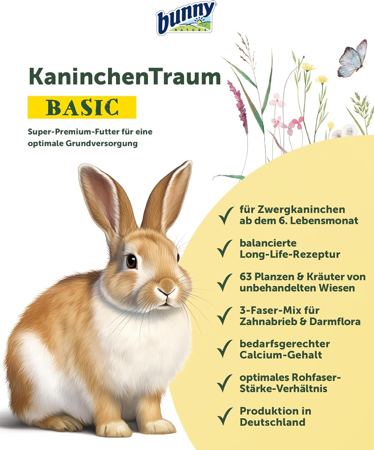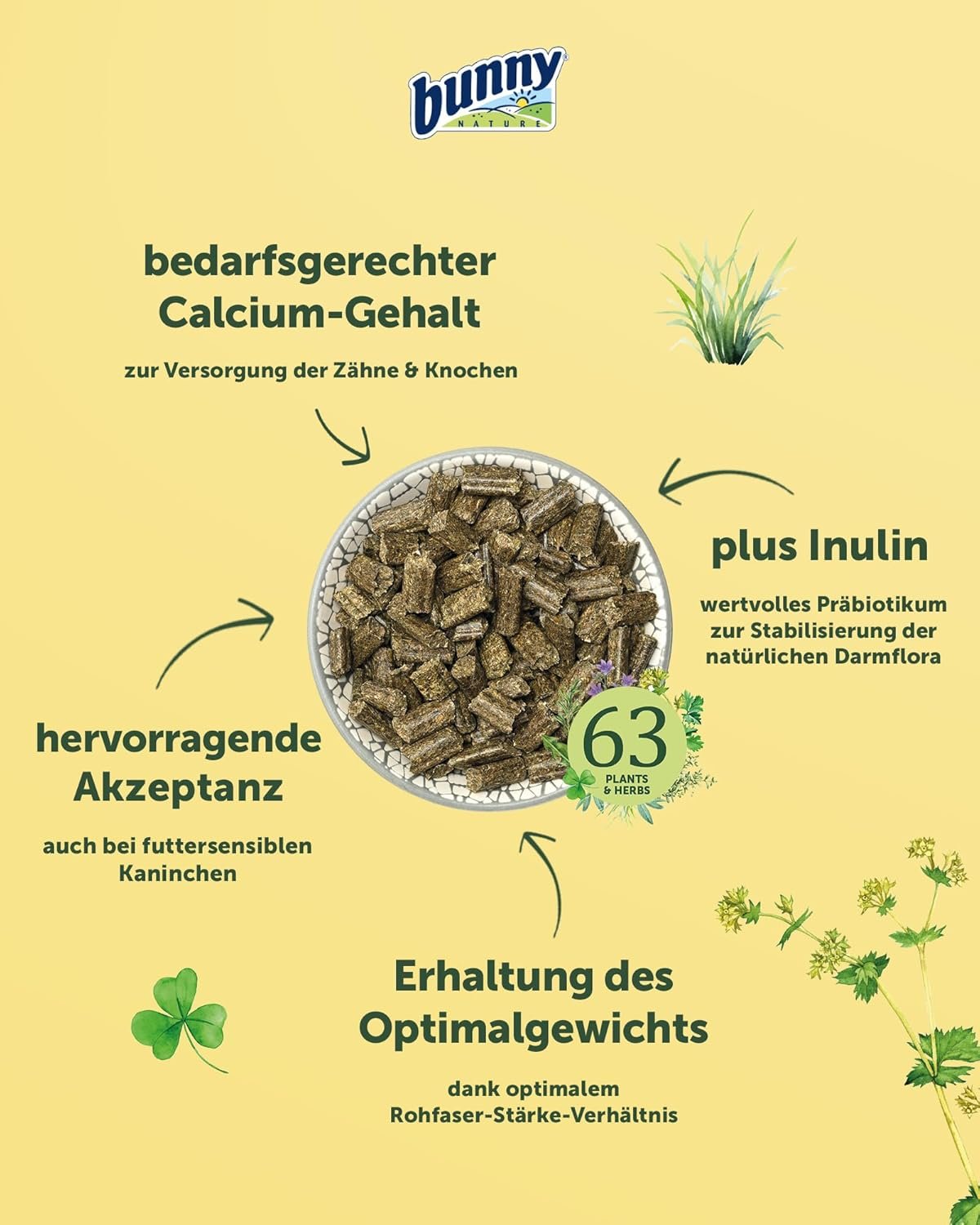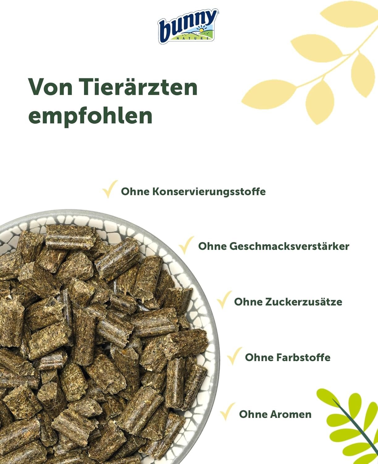 Ohne Zusatzstoffe: frei von Konservierungsmitteln, Geschmacksverstärkern, Zuckerzusätzen, Farbstoffen und Aromen – für das Wohlbefinden Ihres Kaninchens.