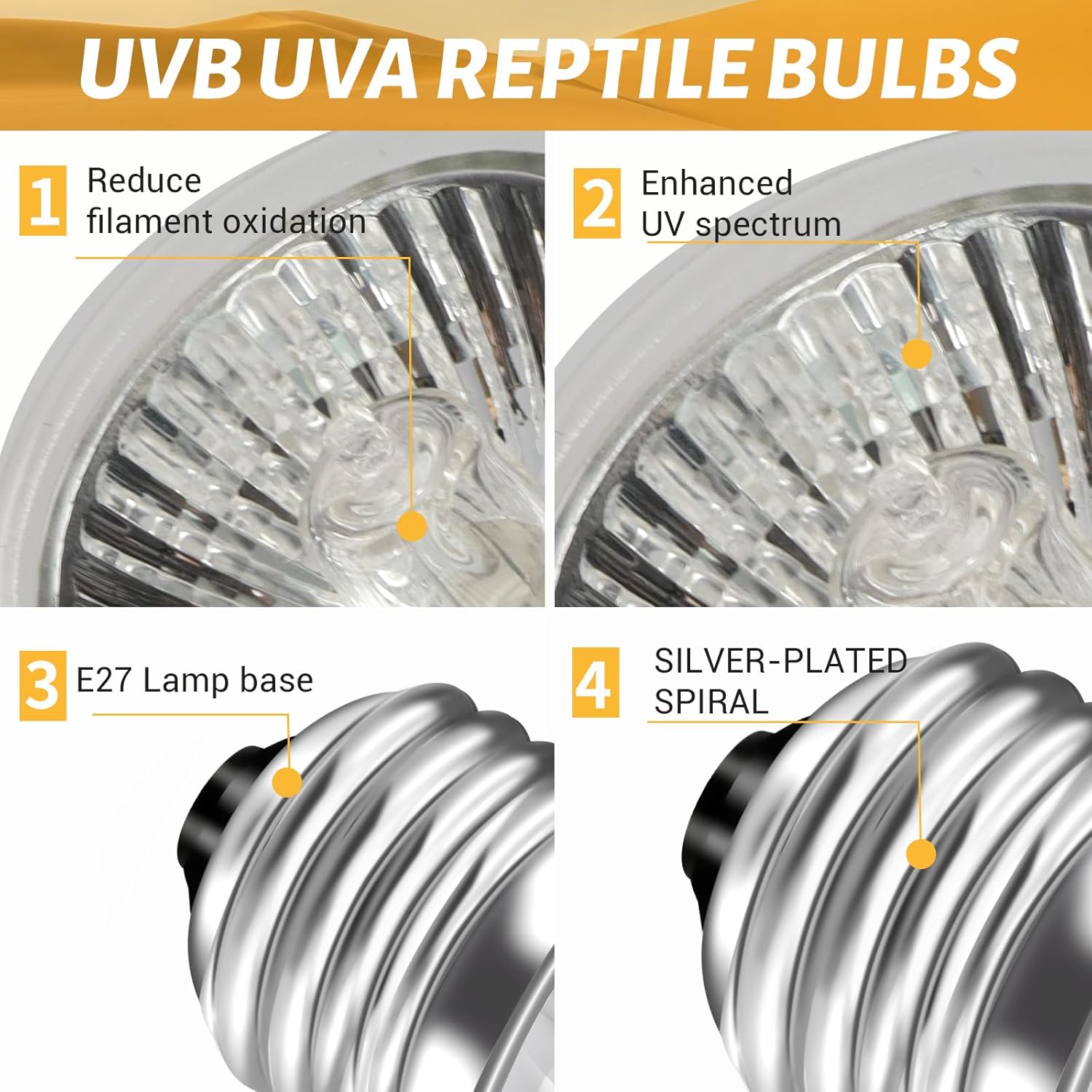 Anwendungen: 75 W E27 UVA-UVB-Lampen eignen sich für eine Vielzahl von Reptilien und Amphibien, darunter Schildkröten, Eidechsen, Schlangen, Frösche, Spinnen, Bartagamen, Geckos, Leguane, Sukkulenten und mehr.
