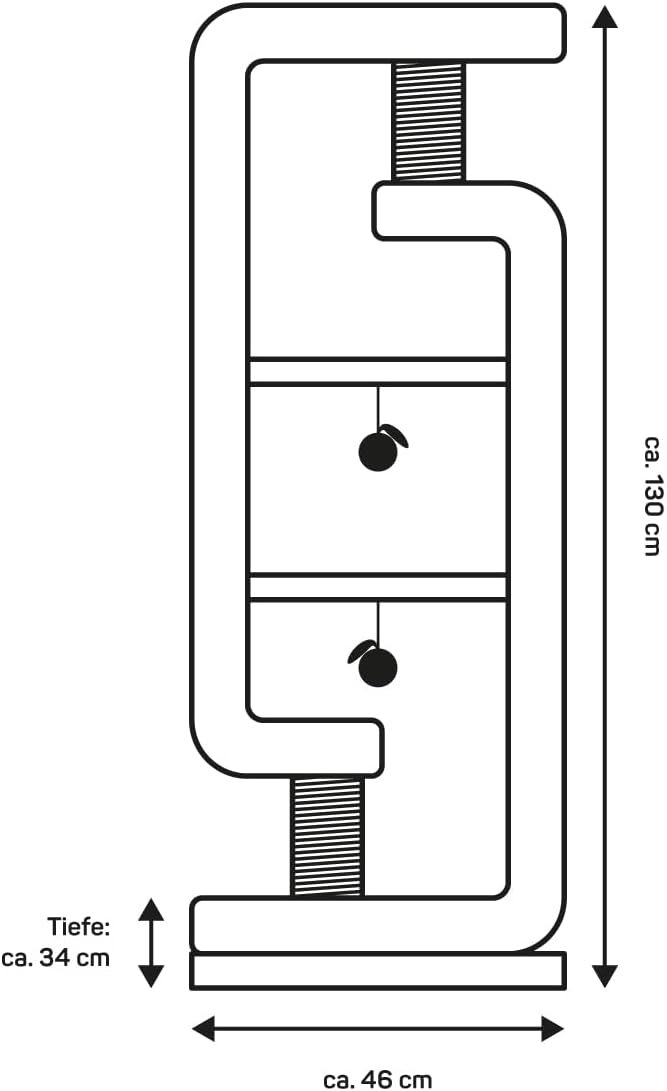 Funktional und stilvoll – mit kompakten Maßen (46 x 34 x 130 cm) ist der Kratzbaum Steve ideal für kleinere Wohnungen oder Räume, in denen Sie nicht viel Platz verschwenden möchten. Trotz seiner kompakten Größe bietet es Ihrer Katze viel Platz zum Kratzen, Klettern und Entspannen.