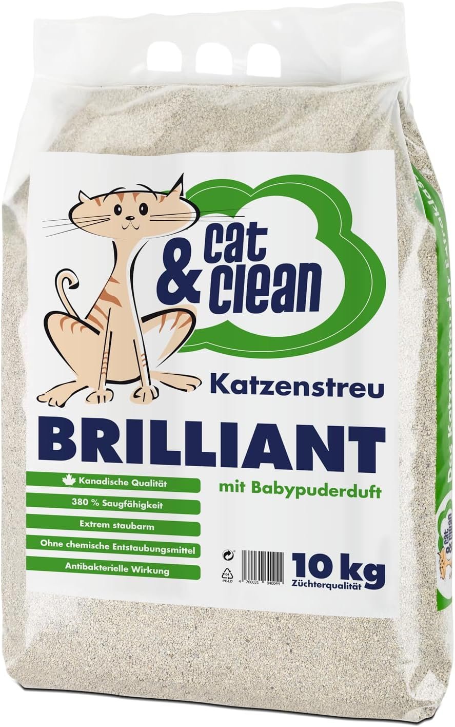 Kraftvolles Katzenstreu mit schönen Düften. Die Katzenstreu von Cat & Clean überzeugt nicht nur durch eine passende Textur, sondern auch durch angenehme Düfte, um der Katzenhygiene voll und ganz gerecht zu werden. Effiziente Hygiene mit Cat & Clean Katzenstreu. Die Katzenstreu von Cat & Clean hat eine feine und kompakte Streu, die schnell Klumpen bildet. Die Saugfähigkeit liegt bei erstaunlich hohen 320 %, bei perfekt funktionierender Geruchsbindung. Nach dem Besuch klebt die Streu nicht an den Pfoten der Katze, das Tier kann die Katzentoilette sauber verlassen. Die Katzenstreu staubt nicht, sodass die Katze nicht unnötig belästigt wird. Die Bettwäsche verströmt einen wohlriechenden Duft, der in verschiedenen Duftrichtungen erhältlich ist. Dieser Duft kommt zum Vorschein, wenn die Bettwäsche nach Gebrauch feucht wird. Aufgrund der Klumpenbildung ist das Produkt äußerst sparsam in der Anwendung und etwa dreimal so ergiebig wie herkömmliche Katzenstreu.
