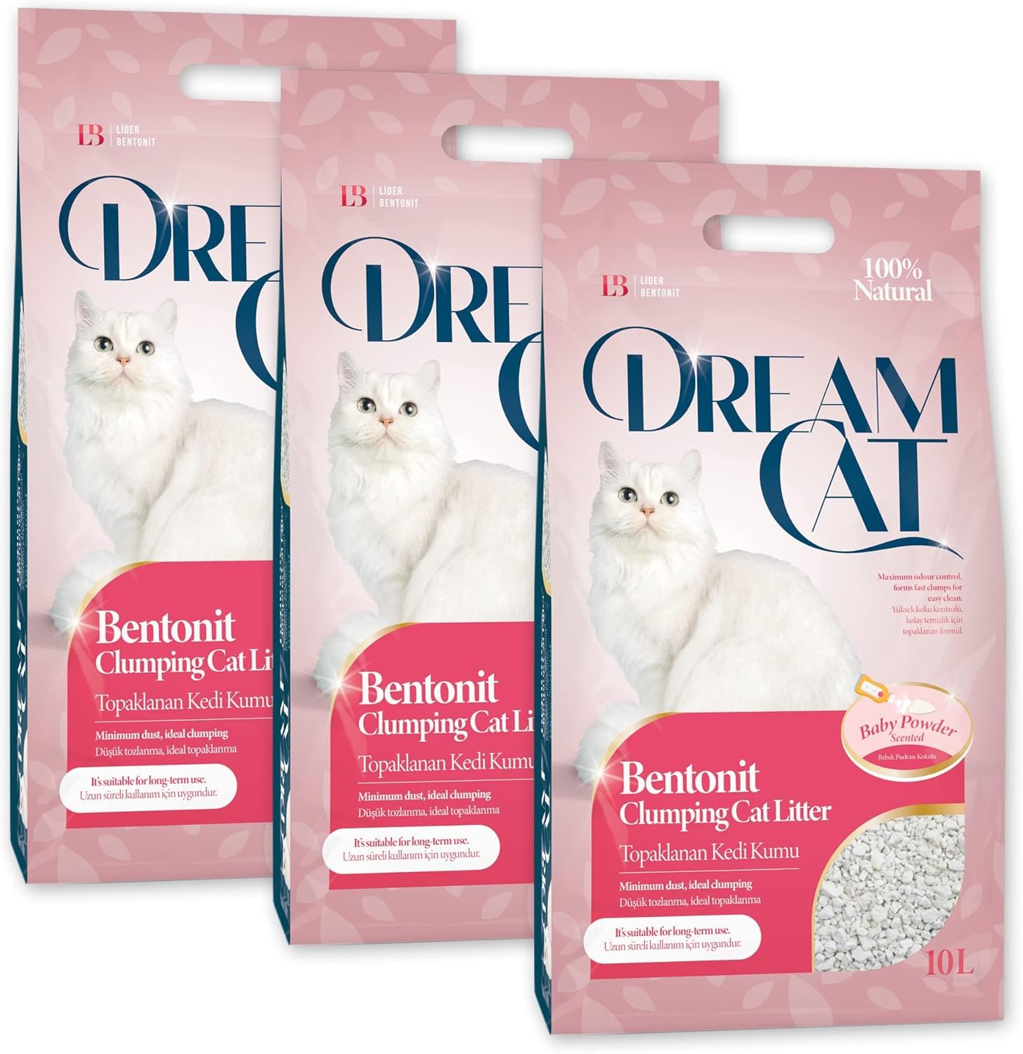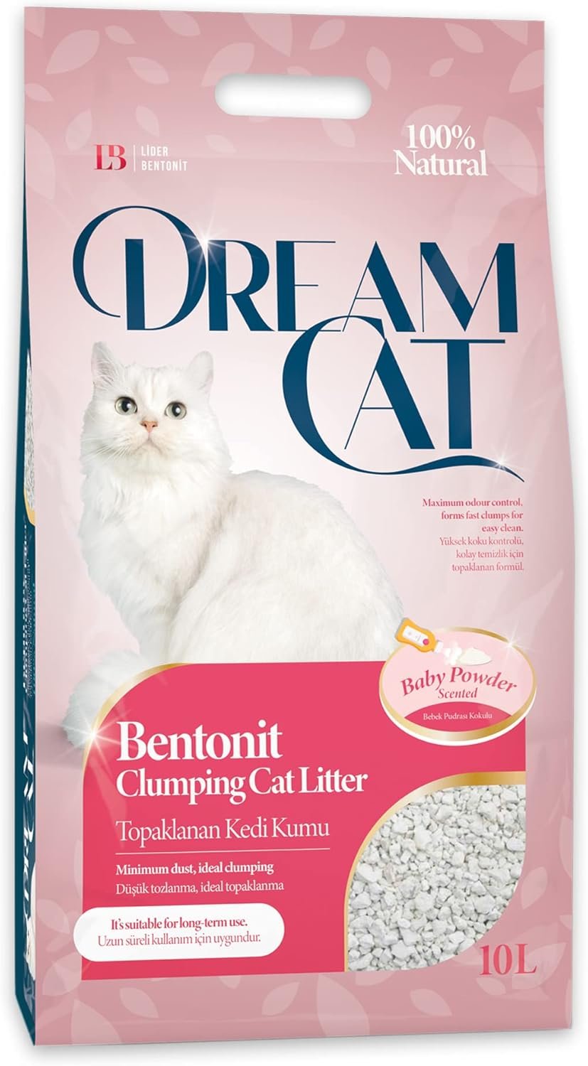DreamCat ist ein klumpenbildendes Katzenstreu. Als reines Naturprodukt wird das Streu aus feinstem Ton (Bentonit) hergestellt. Es ist somit für Katzen völlig gefahrlos. Die extrem feine Körnung ist besonders sanft zu Katzenpfoten. Dream Cat hat eine enorme Aufnahmekraft (ca. 380% Saugfähigkeit), ist staubarm, beseitigt unangenehme Gerüche und verbreitet einen angenehm leichten Baby Duft. Es eignet sich somit auch sehr gut bei potenten Katern oder bei vielen Katzen. Auf Grund der klumpenden Eigenschaft muss nicht jedesmal das ganze Streu ausgetauscht werden. Es reicht täglich die Klumpen mit einer Schaufel zu entfernen. DreamCat ist somit wesentlich sparsamer und leichter zu benutzen als gewöhnliches Katzenstreu. 8,5 kg DreamCat entsprechen ca. 25 kg herkömmliches Katzenstreu.