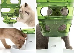 Der Catit Senses 2.0 Futterbaum ist die Futterlösung für Katzen, die gerne schnell fressen. Dieses clevere Spielzeug sorgt dafür, dass sie langsamer fressen. Spielerisch müssen die Katzen das Futter mit der Pfote durch die verschiedenen Öffnungen „bearbeiten“.
