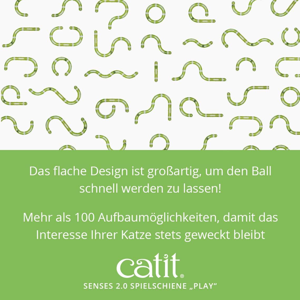 Die Catit Senses Spielschienen bestehen aus einer Kugel, die in der geschlossenen Spielschiene wie in einer Achterbahn herumsaust. Die Öffnungen in der Tunneldecke regen deine Katze dazu an, den Ball zu jagen und ihn anzuschubsen, was deine Katze stundenlang unterhalten kann.