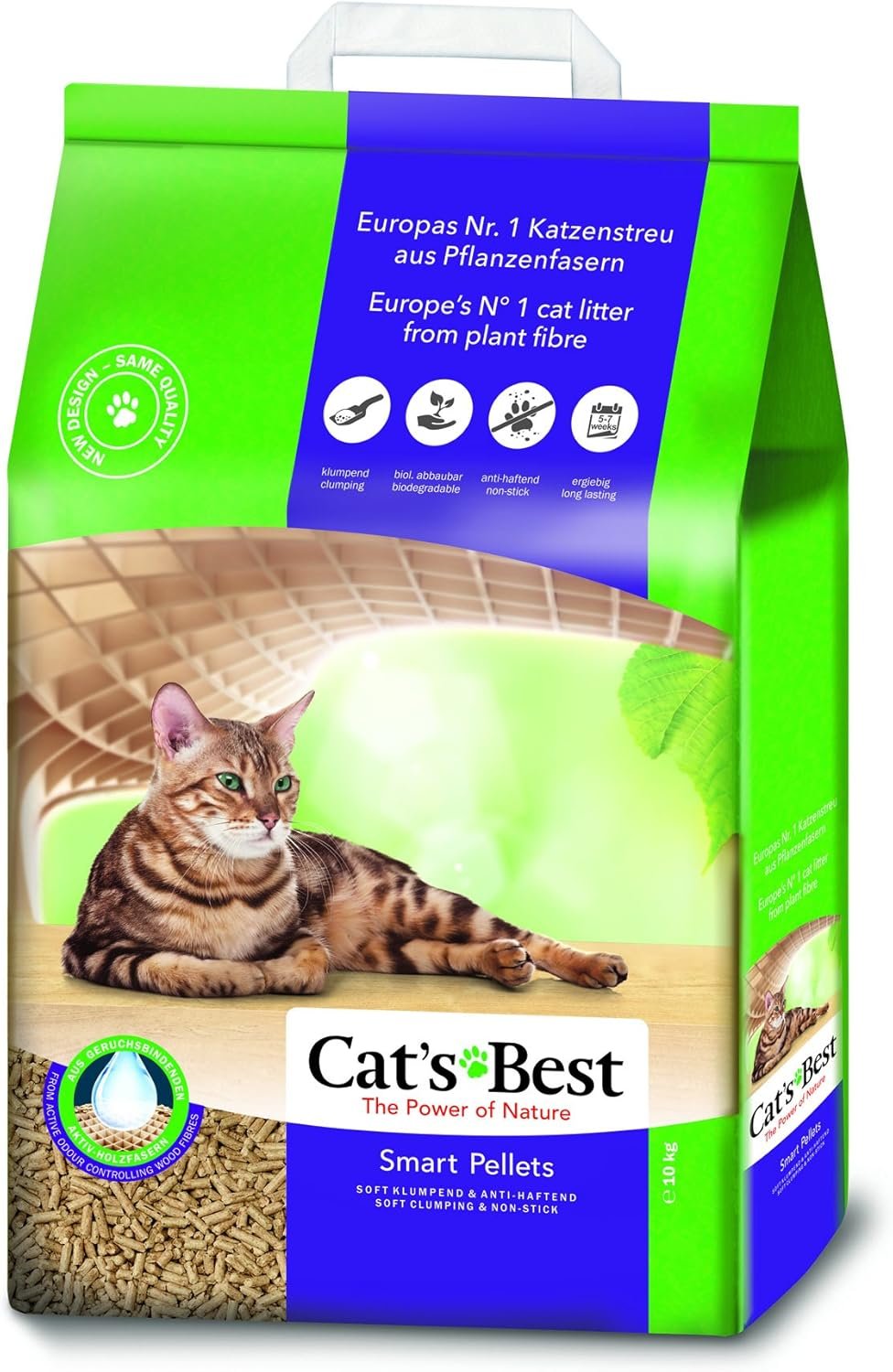 Die Mini-Power-Pellets sind ideal für Langhaarkatzen, da sie schwer sind und eine flachere Oberfläche bieten, die ein Anhaften der Streu am Fell verhindert.