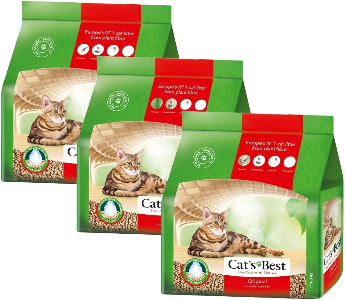 Cat’s Best Original Pflanzenfaserstreu 3 x 10 Liter Katzenstreu, Toilettenstreu