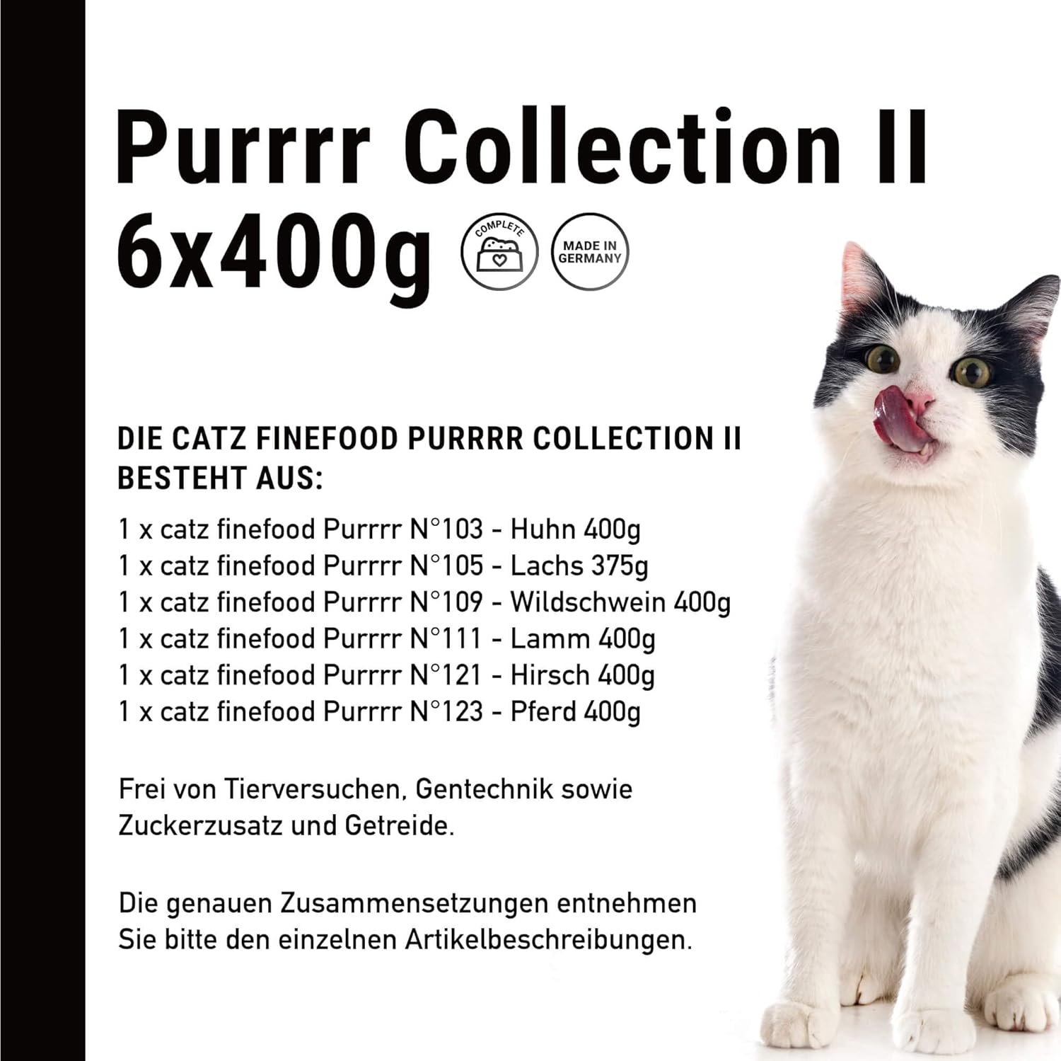Für empfindliche Katzen: Ohne Getreide, ohne Zucker und nur einer einzigen tierischen Proteinquelle ist unser Futter besonders für Allergiker und empfindliche Katzen, auch als Alleinfuttermittel, geeignet