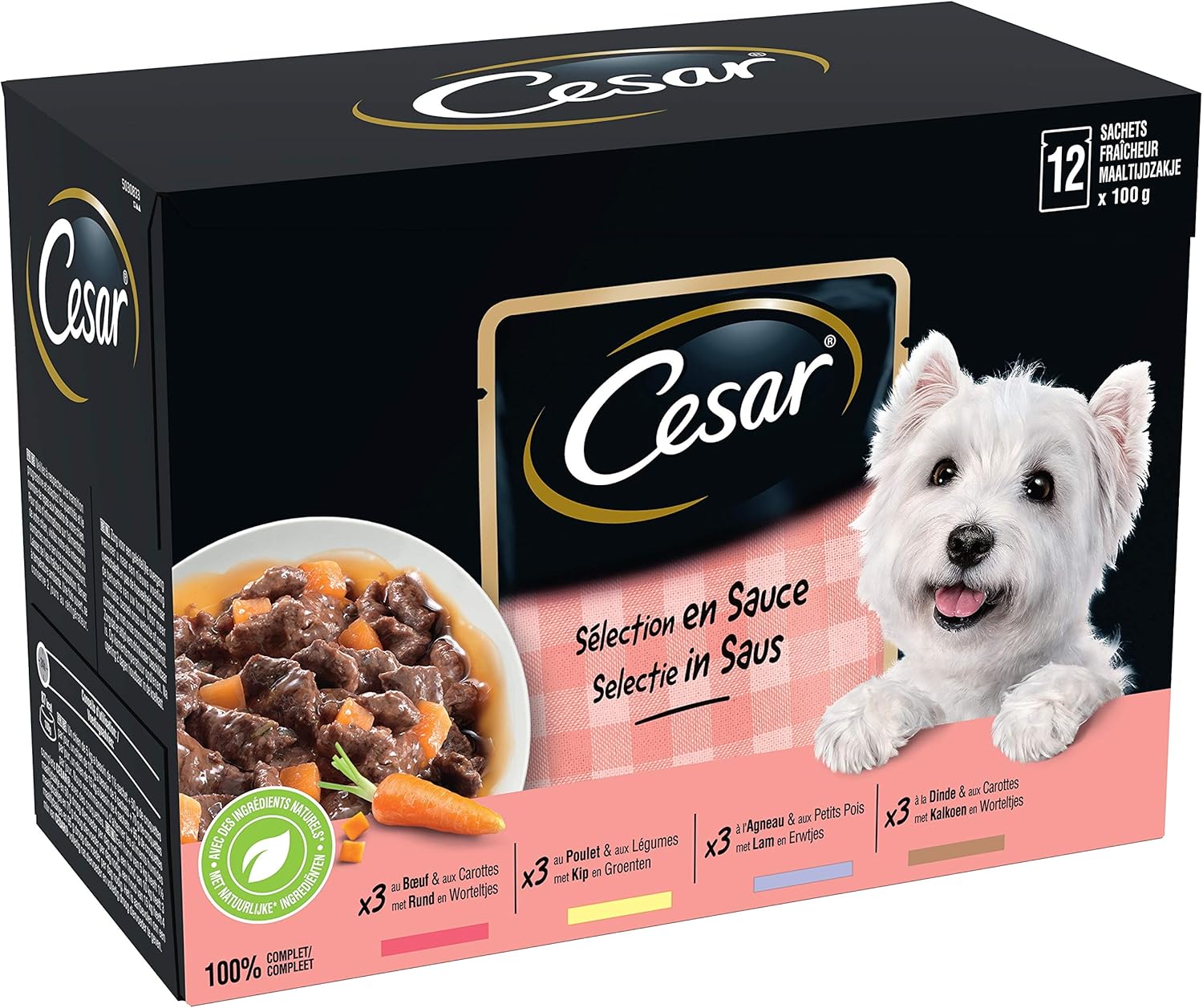 Lieferumfang: 12 x 100 g Frischebeutel, Saucenauswahl mit 4 Sorten Cesar / Hundefutter / ohne Zuckerzusatz, ohne künstliche Farb- und Aromastoffe