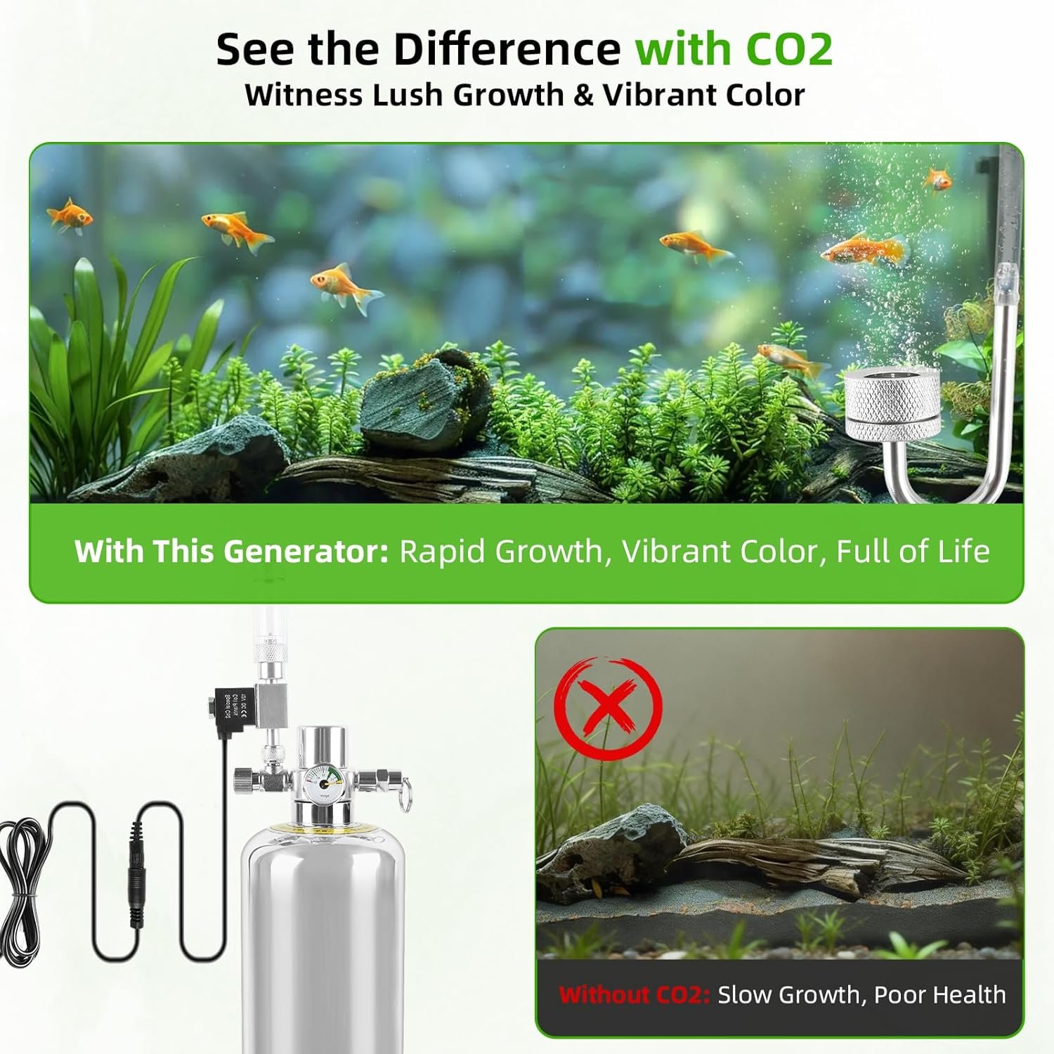 Großes Volumen, stabile Gasversorgung: Ausgestattet mit einer 2-Liter-Edelstahlflasche und einer Dicke von 12 mm ist sie robust und auslaufsicher, ideal für den Langzeitgebrauch. In Ihrem Aquarium setzt es kontinuierlich CO2 frei, fördert die Photosynthese von Wasserpflanzen und sorgt für eine üppigere Unterwasserlandschaft ohne häufigen Zylinderwechsel.