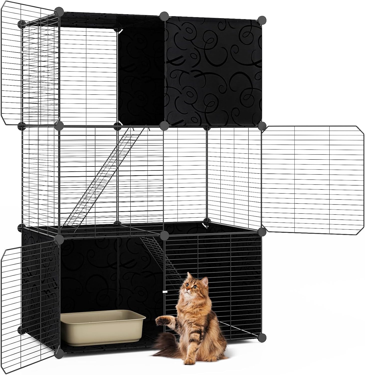 Geräumiges mehrstöckiges Design: Dieser große Katzenkäfig misst 74 x 47 x 110 cm (L x B x H) und verfügt über 3 Ebenen zum Schlafen, Spielen und für den Toilettengang. Jede Ebene ist über 2 Kletterleitern erreichbar, sodass sich Ihre Katze problemlos und frei in ihrem Privatbereich bewegen kann.