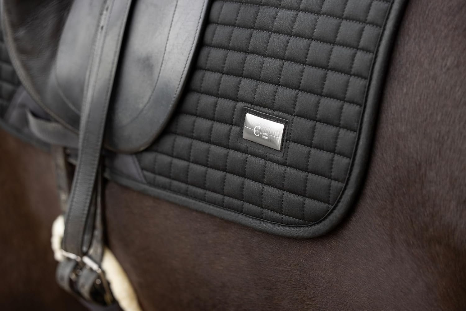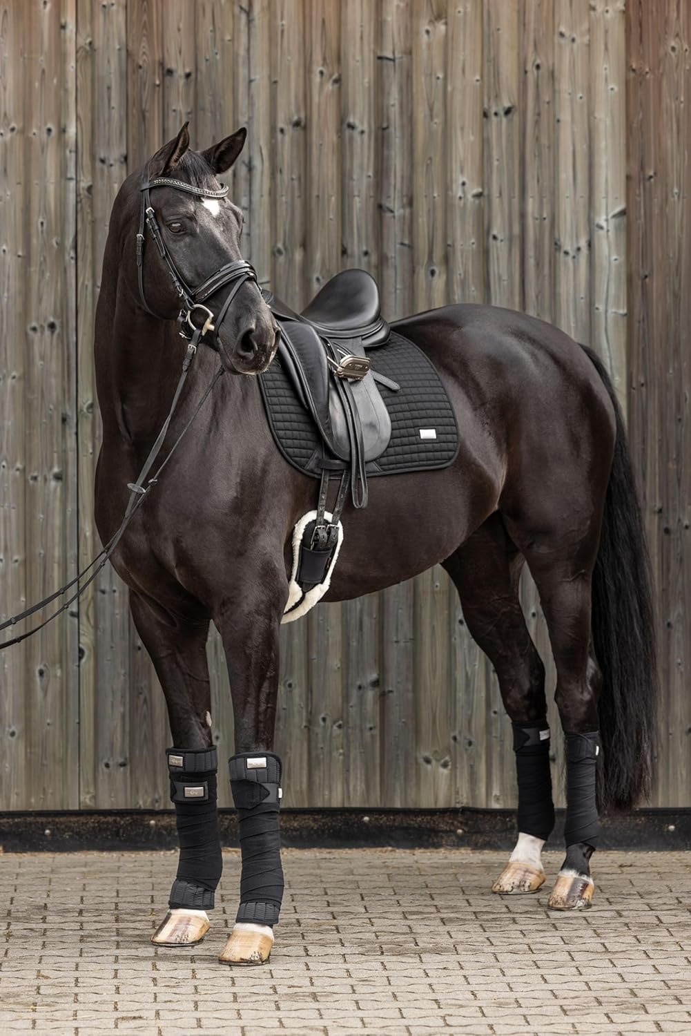 Die CovallieroTherm Schabracke sorgt für einen angenehm wärmenden passiven Physiotherapie-Effekt, der die Gesundheit und das Wohlbefinden Ihres Pferdes fördert. Dank des innovativen CovallieroTherm-Materials mit eingebauten Keramikpartikeln wird die Durchblutung der Muskulatur angeregt und die Regeneration nach dem Training unterstützt. Das sogenannte CovaTex-Material ist zudem atmungsaktiv, sodass eine optimale Luftzirkulation ermöglicht sowie Überhitzung und Schweißbildung verhindert werden. So bleibt Ihr Pferd auch bei anstrengenden Trainingseinheiten angenehm kühl und trocken. Die strapazierfähige Schabracke ist anatomisch geformt, um eine perfekte Passform auf dem Pferderücken zu gewährleisten. Es bietet eine hochwertige Polsterung für einen optimalen Druckausgleich und schützt Ihr Pferd vor Druckstellen und Reibung. Die Sattel- und Gürtelschlaufen sowie der Klettverschluss sorgen für einen sicheren Halt unter dem Sattel. Die Schabracke ist maschinenwaschbar und kann problemlos bei 30 Grad gereinigt werden, ohne ihre Funktionalität zu verlieren.