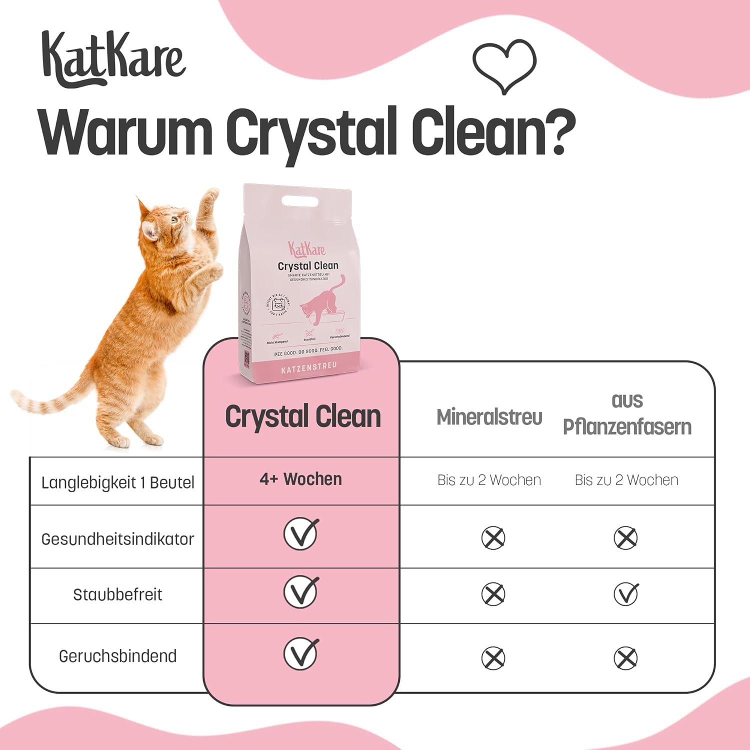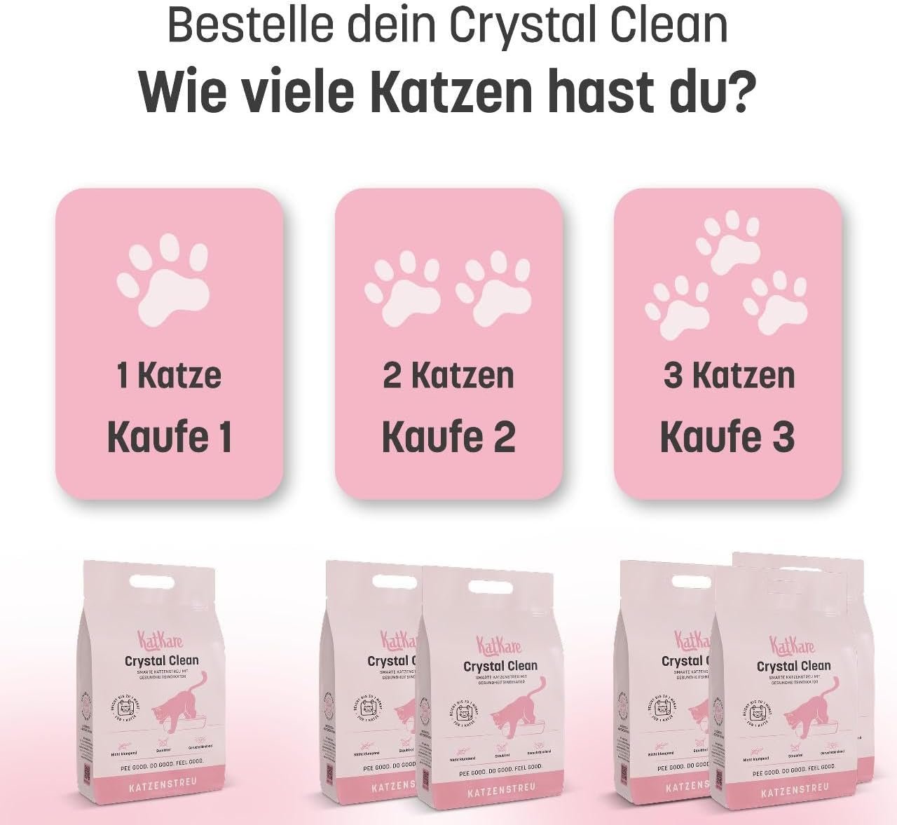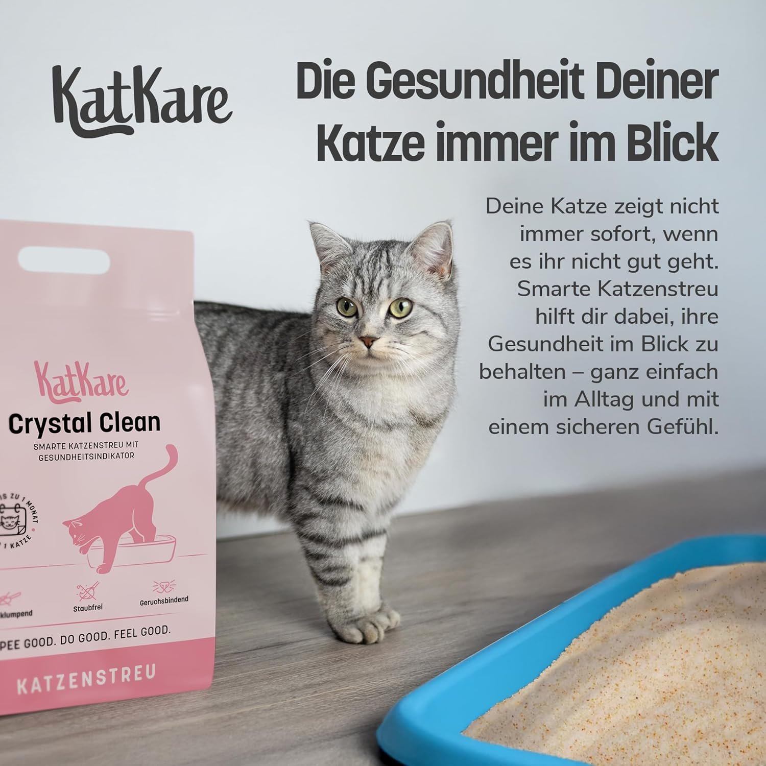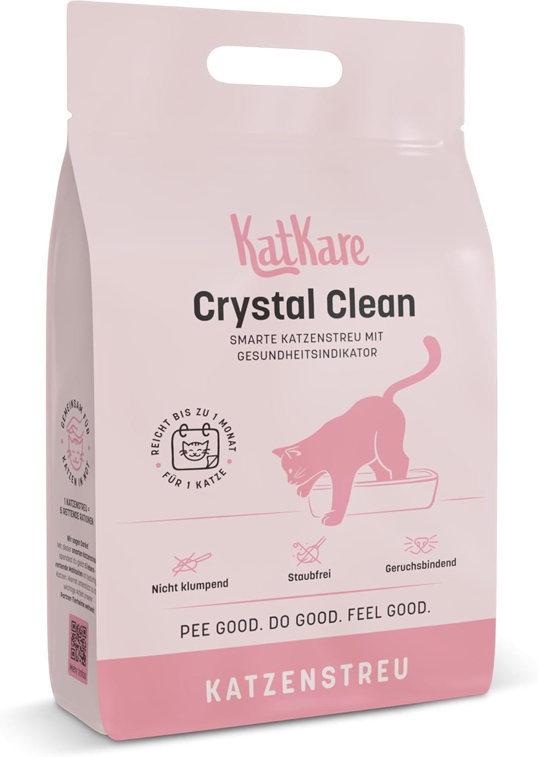 KATKARE CRYSTAL CLEAN: Ein Beutel hochwertiges Katzenstreu reicht für mindestens einen Monat für eine Katzentoilette – ergiebig und zuverlässig.