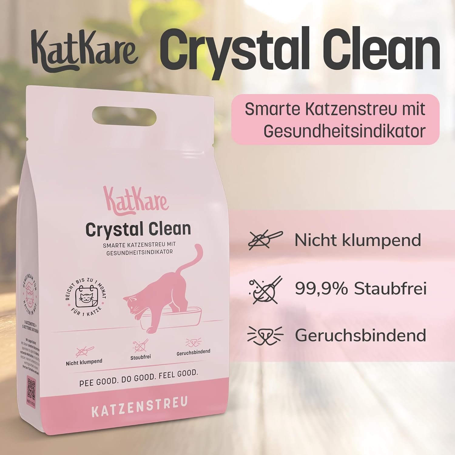 Effektiv und hygienisch: Die Streu ist geruchsbindend, staubfrei und besonders hygienisch – für eine saubere Katzentoilette ohne unangenehme Gerüche.