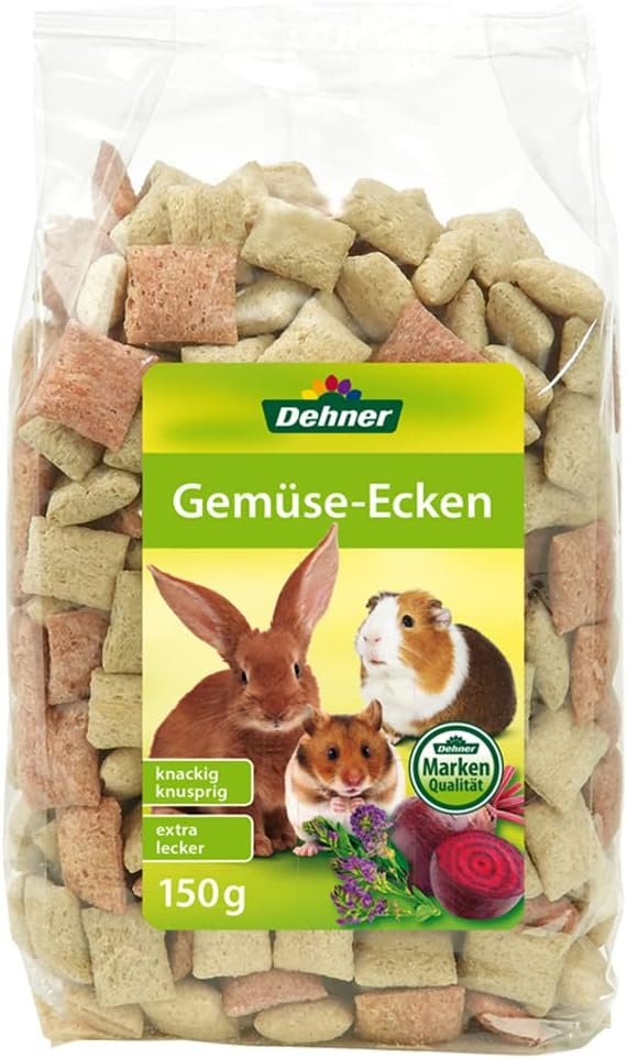 Mit den Dehner Gemüseecken bieten Sie Ihrem Nager eine leckere Abwechslung mit Biss. Die Außenhülle ist besonders knusprig und fördert somit die Zahnhygiene Ihres Tieres. Auch geschmacklich können die Dehner Gemüseecken überzeugen. Durch den köstlichen Geschmack verschiedener Gemüsesorten wird Ihrem Liebling jede Menge Abwechslung geboten und sorgt für eine wahre Geschmacksexplosion. Hier werden einige Nagerherzen höher schlagen. Die Dehner Gemüseecken enthalten Rote Bete, die für ihre gute Bekömmlichkeit bekannt ist. Aber auch Luzerne, die in den Dehner Gemüseecken enthalten ist, versorgt Ihr Haustier mit natürlichen Proteinen. So können Sie nicht nur das Wohlbefinden steigern, sondern auch die Gesundheit unterstützen. Verwöhnen Sie Ihren Nager mit den Dehner Gemüseecken.