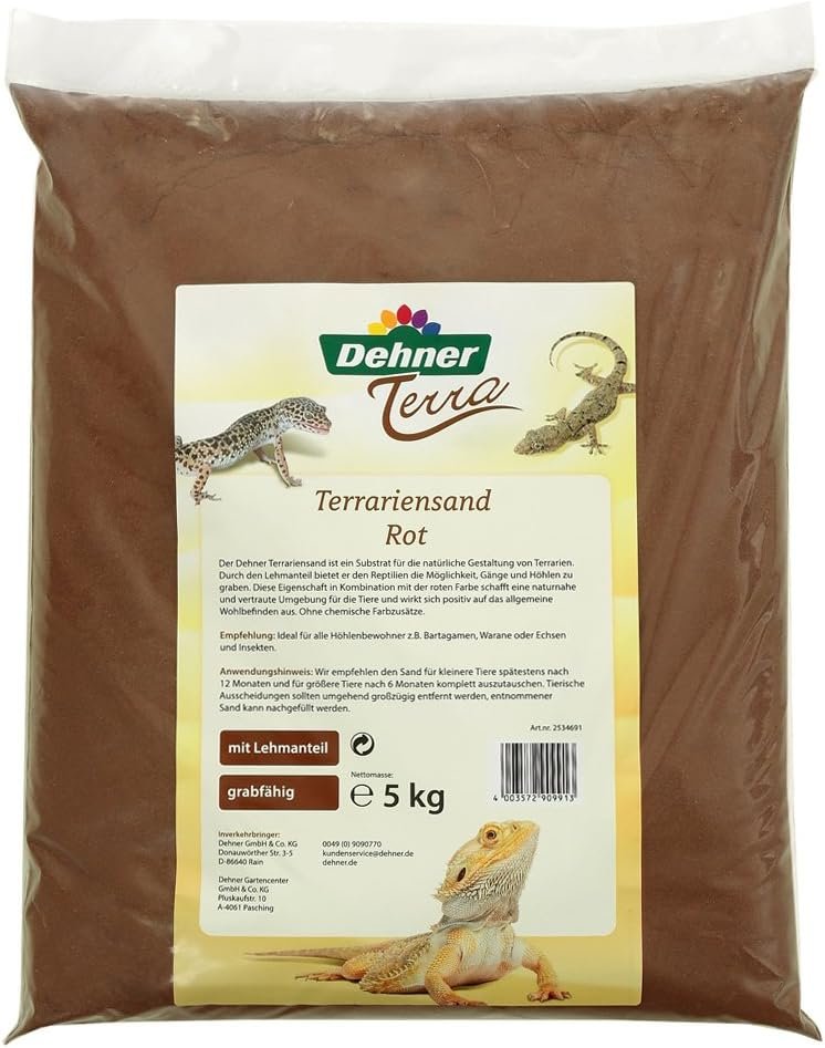 Mit unserem Dehner Terra Terrariensand bieten Sie Ihrem Haustier einen sehr angenehmen Sand und der Bodengrund gibt Ihren Tieren eine vertraute, natürliche Umgebung. Unser Dehner Terra Terrariensand ist aufgrund seiner Beschaffenheit ideal für Wüsten- und Steppenreptilien. Das Substrat bietet Sandboas, Leopardgeckos und Steppenwaranas eine vertraute Umgebung, sodass sich Ihre Tiere besonders wohl fühlen, was sich positiv auf die Gesundheit und das allgemeine Wohlbefinden auswirkt. Darüber hinaus unterstützen Sie mit dem Terrariensand von Dehner Terra die natürliche Grabtätigkeit Ihrer Reptilien. Dank Dehner Terra Terrariensand entwickelt sich Ihr Haustier prächtig, denn der Terrariensand fördert arttypisches Verhalten. Mit einer Körnung von 0,2 bis 1 mm lässt es sich bequem auf dem Untergrund bewegen, ohne Ihrem Haustier Schmerzen zu bereiten.