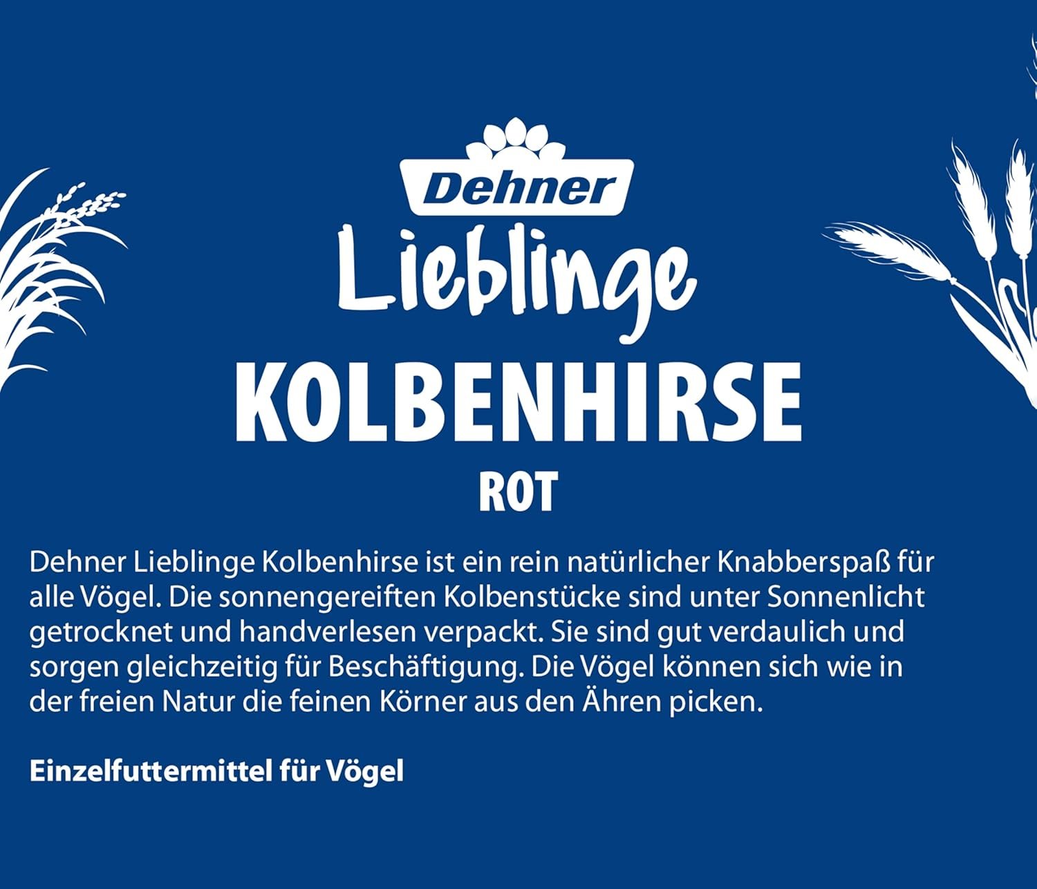 Die Dehner Fuchsschwanzhirse in feinster Qualität ist ideal für alle Sittiche und Exoten, aber auch getreidefressende Nagetiere wie Mäuse oder Ratten nehmen gerne mit der leckeren Ergänzung zu. Eine willkommene Abwechslung, die auch der Beschäftigung der Tiere dient, da sie sich das Futter selbst erarbeiten müssen. Die Fuchsschwanzhirse in 1a-Qualität stammt ausschließlich aus den besten Erzeugerländern und ist ein echtes Naturprodukt. Hängen Sie die Hirse einfach in den Käfig. Wie in der freien Natur picken die Vögel die vitaminreichen Körner aus den Ähren.
