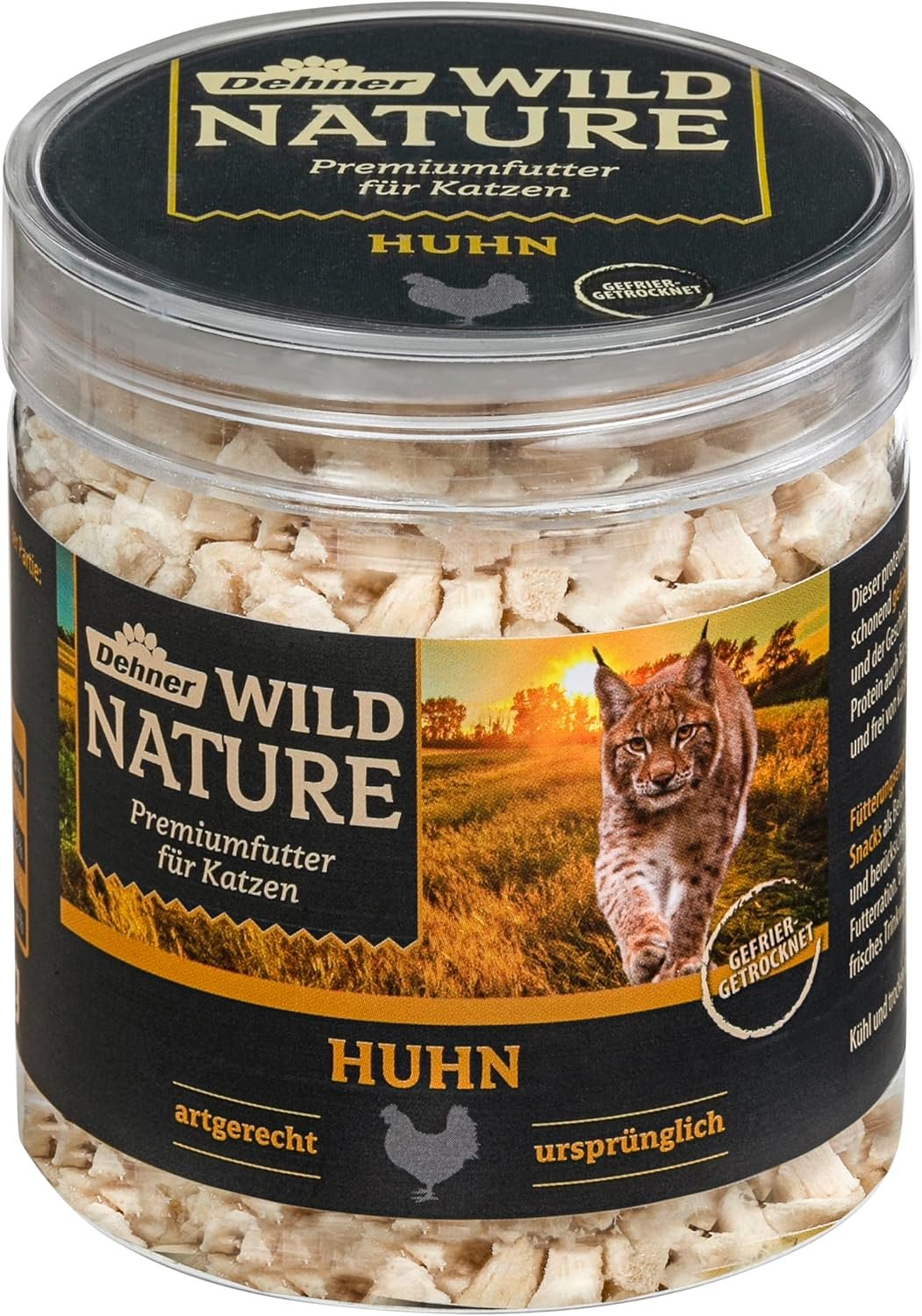 Dehner Wild Nature ist als Nass- und Trockenfutter in leckeren, abwechslungsreichen Sorten erhältlich und dank der abgestimmten Sorten auch als System zur Mischfütterung geeignet. Durch den völligen Verzicht auf Getreide, das nicht zum natürlichen Speiseplan der Katze gehört und oft zu Unverträglichkeiten führt, ist es auch ideal für ernährungssensible Katzen geeignet.