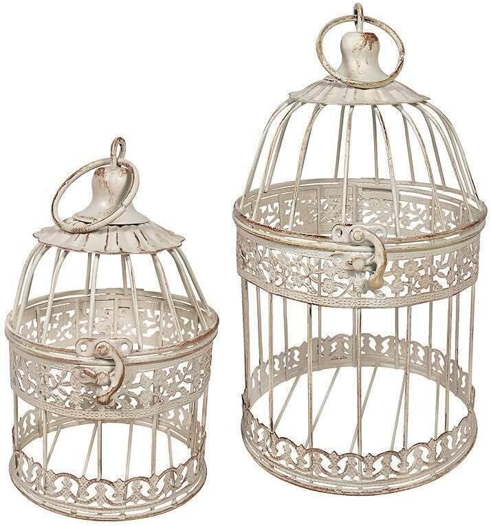Diese wunderschönen Vogelkäfige sind aus Metall gefertigt und antikweiß lackiert.