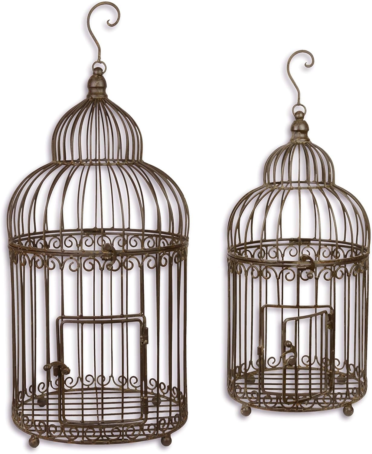 Dekorativer Vogelkäfig aus Metall im Antik-Look, 2er-Set, 66/56 cm, braun