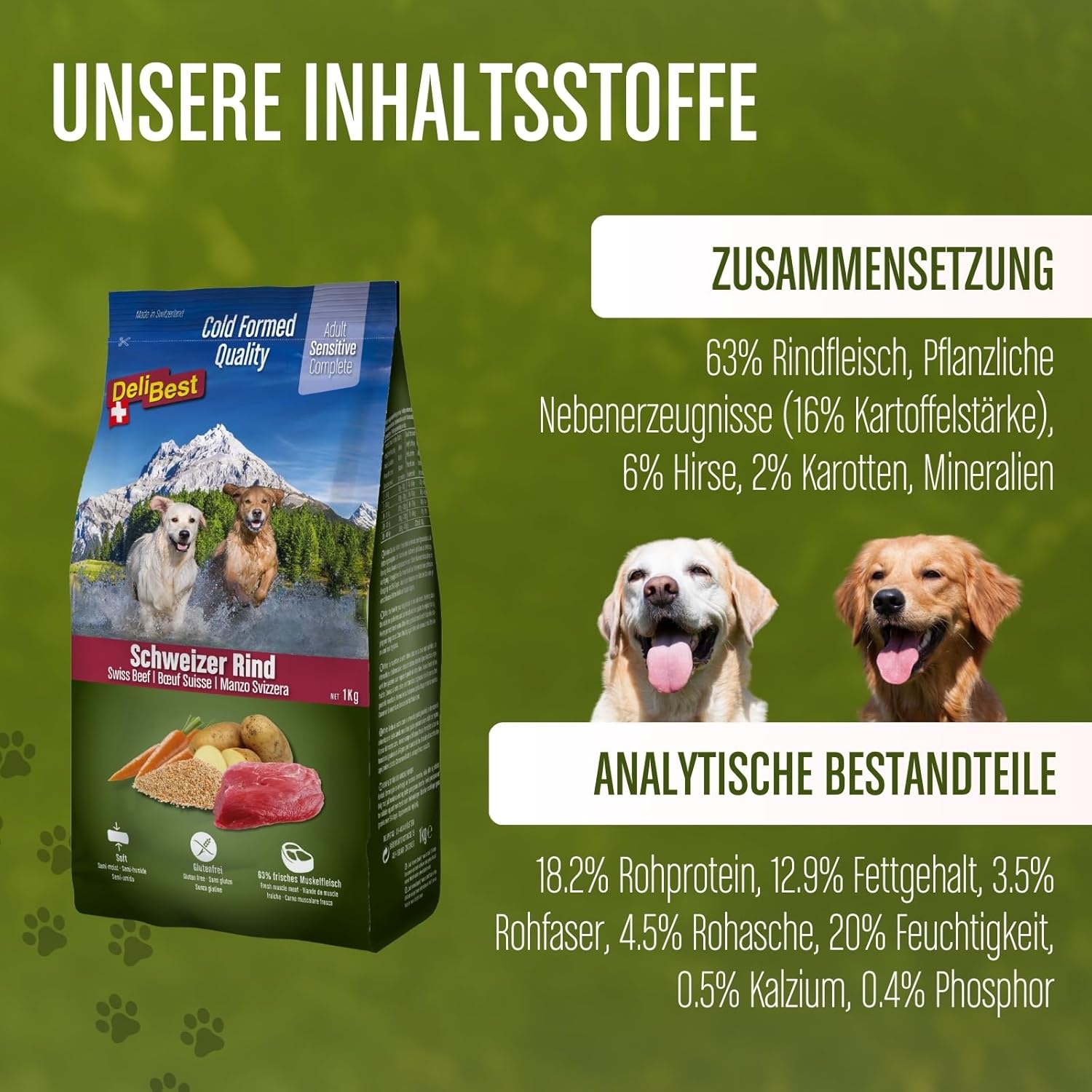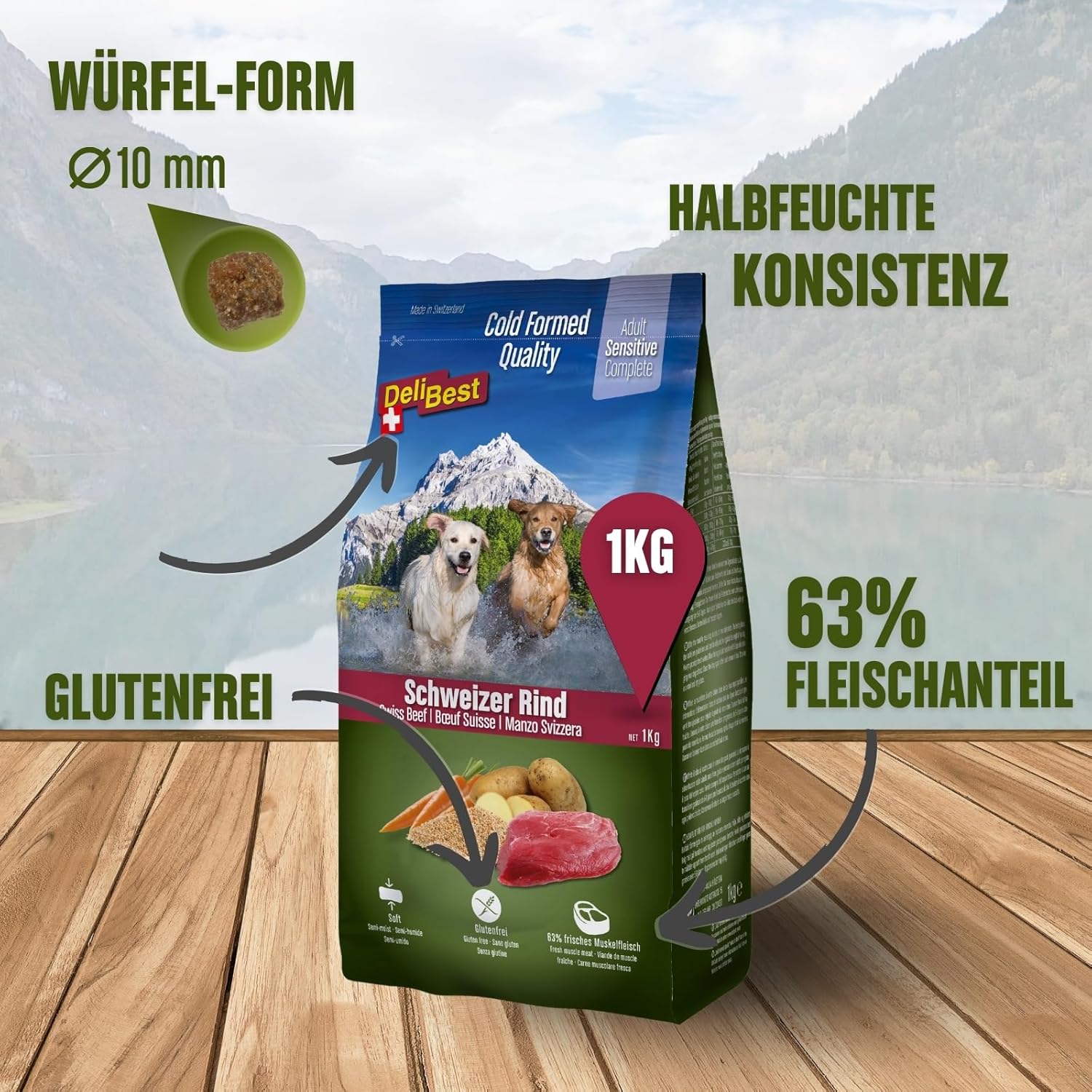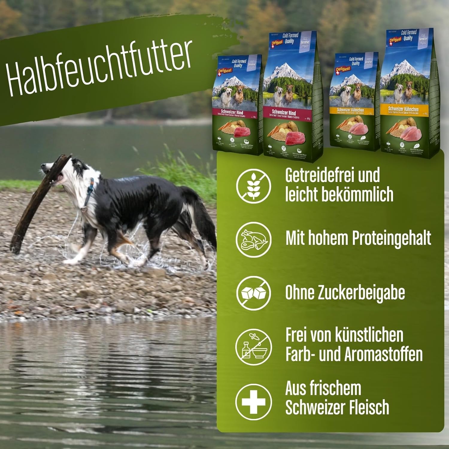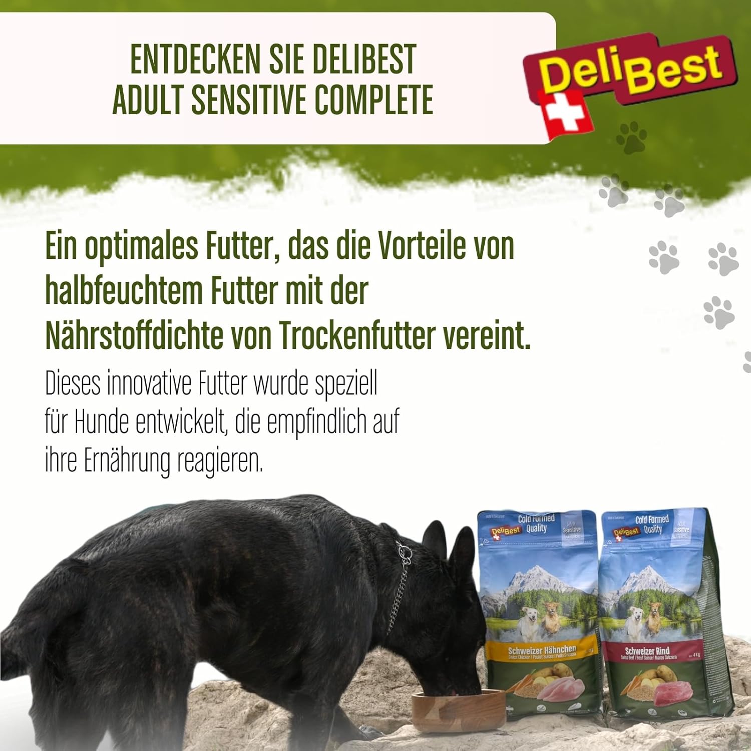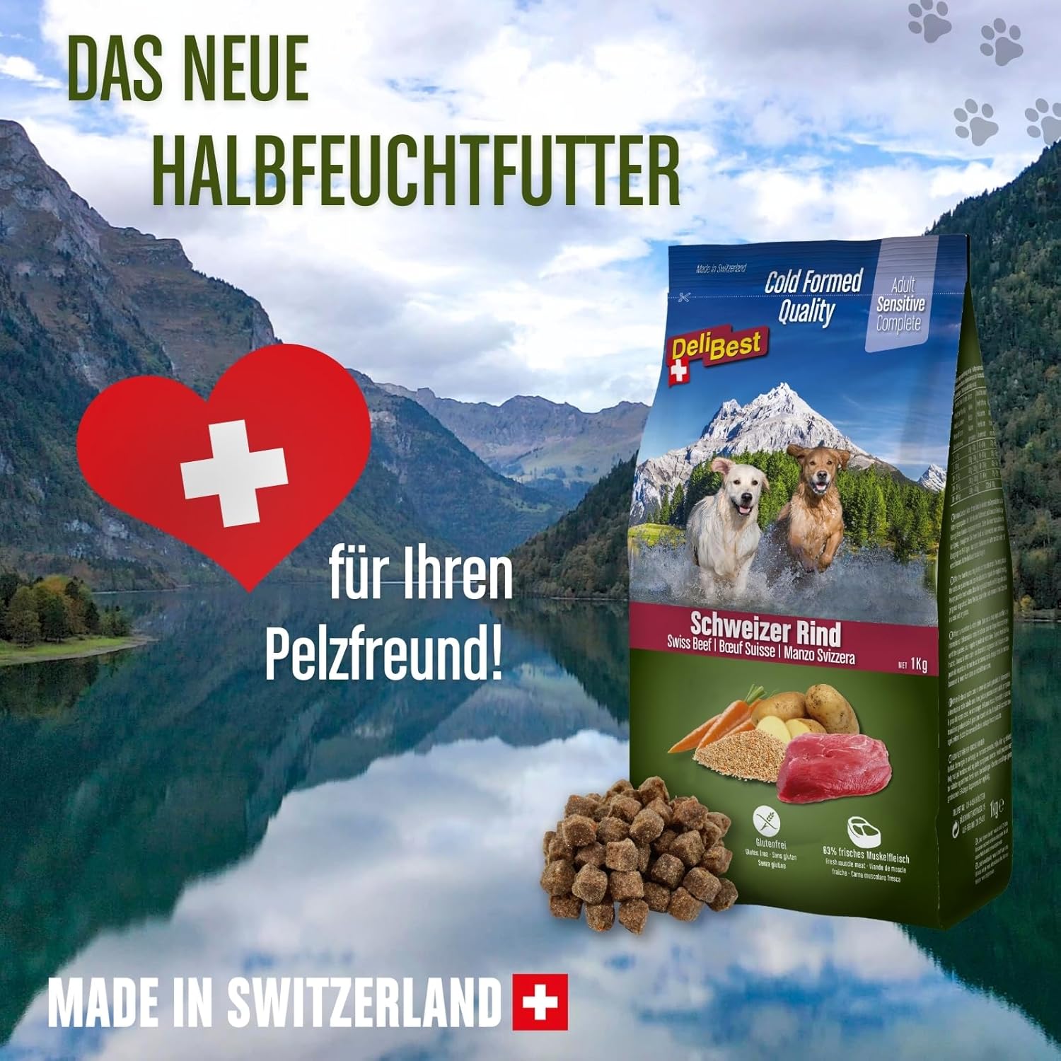 Premiumfutter – DeliBest Hundefutter sind Schweizer Qualitätsprodukte aus frischem Schweizer Fleisch „Made in Switzerland“ – nur das Beste für Ihren Hund