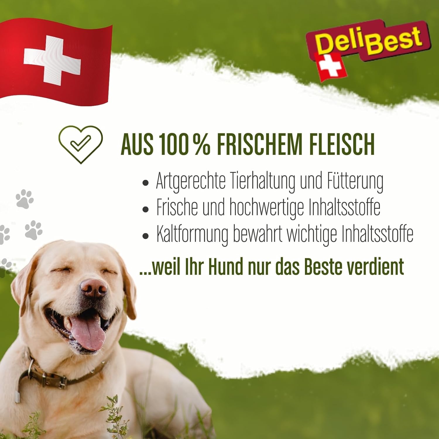 Premiumfutter – DeliBest Hundefutter sind Schweizer Qualitätsprodukte aus frischem Schweizer Fleisch „Made in Switzerland“ – nur das Beste für Ihren Hund