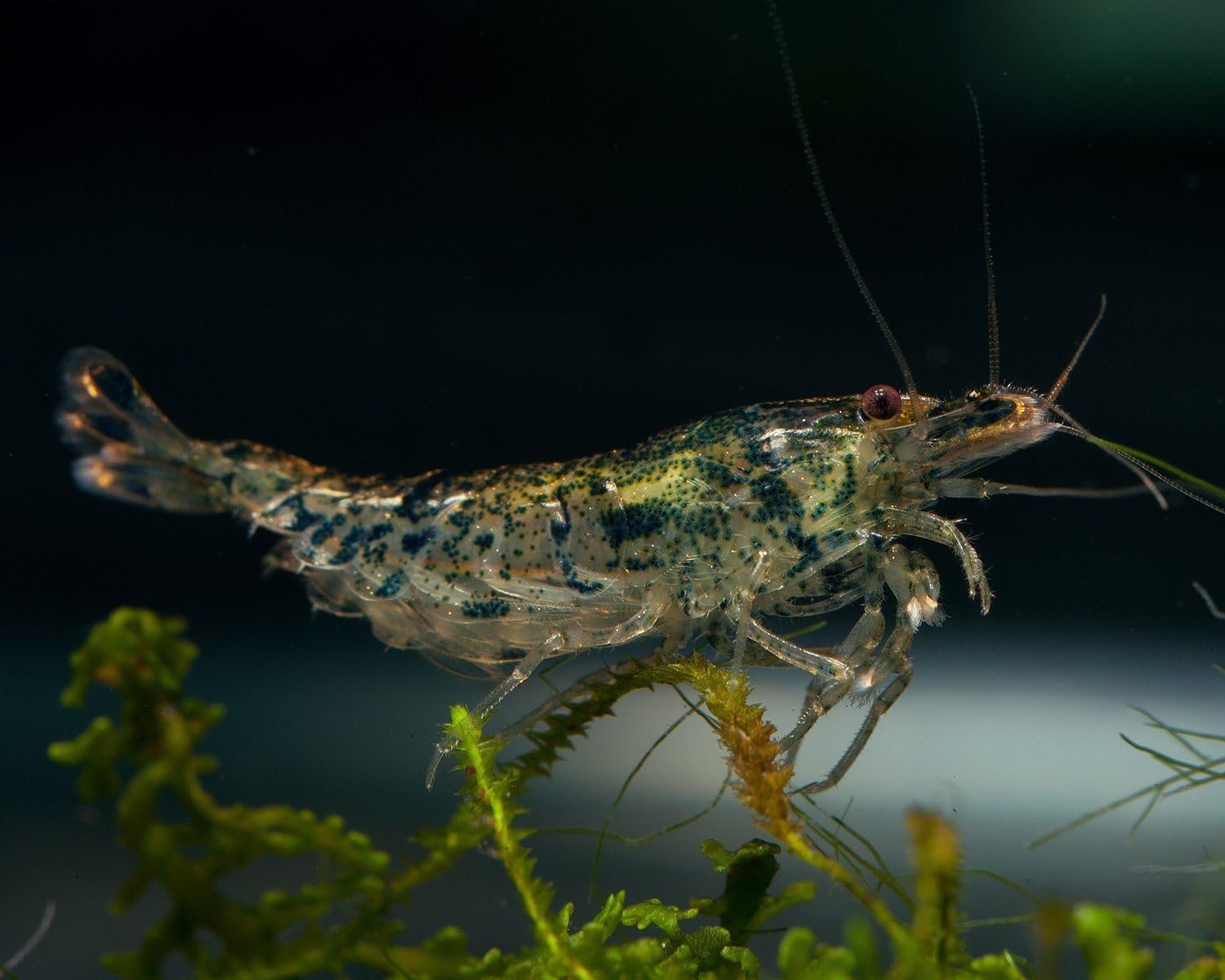 Mit einer Größe von bis zu 3 cm (Männchen bleiben etwas kleiner) eignen sich Amanogarnelen perfekt für Nano- und Gesellschaftsaquarien. Sie sind friedlich und vertragen sich gut mit Fischen, Krabben, Schnecken etc. Alle 3-4 Wochen tragen die Weibchen bis zu 40 Eier, aus denen direkt – ohne Larvenstadium – selbstständige Jungtiere schlüpfen. Besonders Aquarienmoos ist ein ideales Versteck für den Nachwuchs, voller Mikroorganismen und Wuchs als wertvolles Erstfutter.