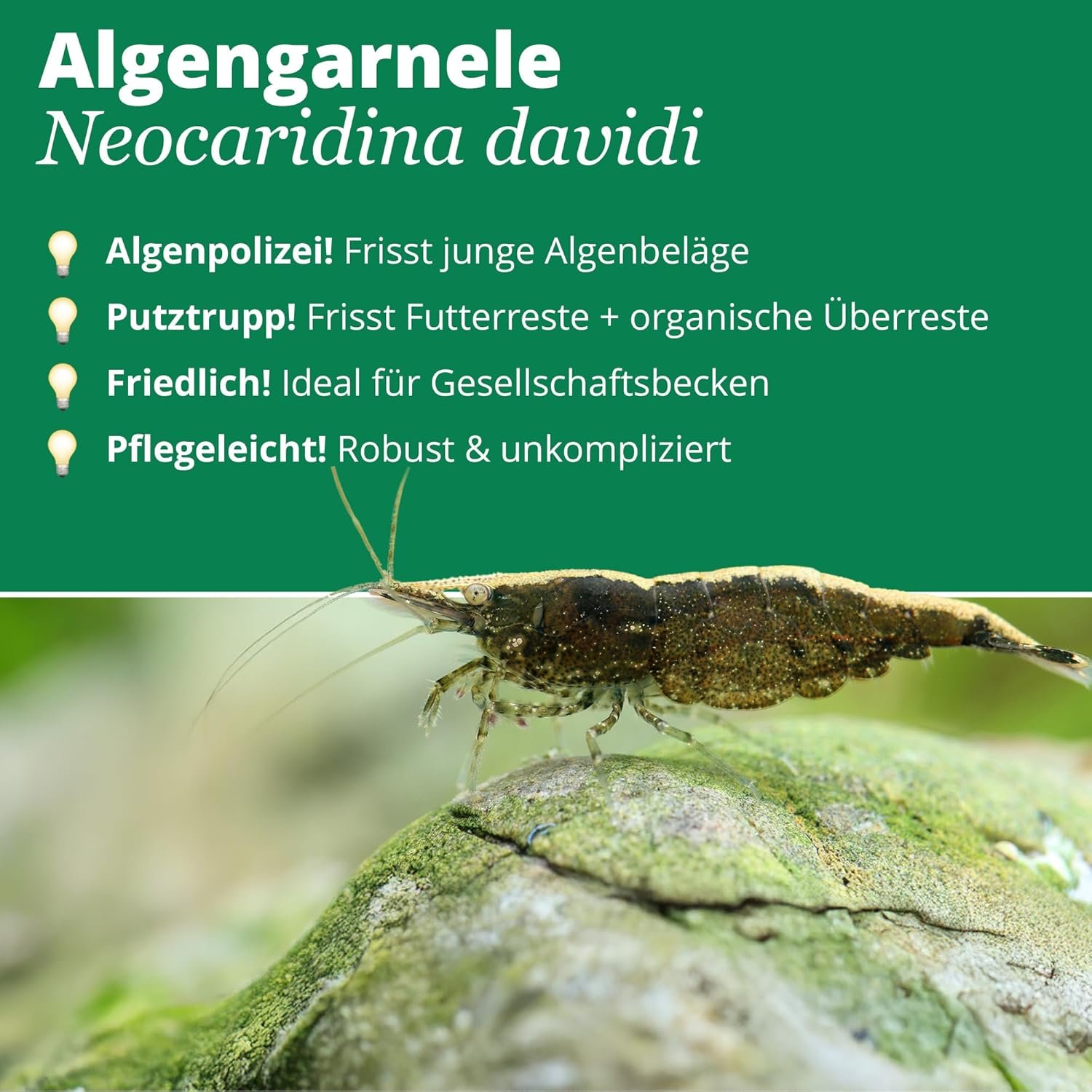 Diese robusten, pflegeleichten Garnelen bringen Leben & Bewegung in dein Aquarium – und halten es gleichzeitig sauber & im biologischen Gleichgewicht.