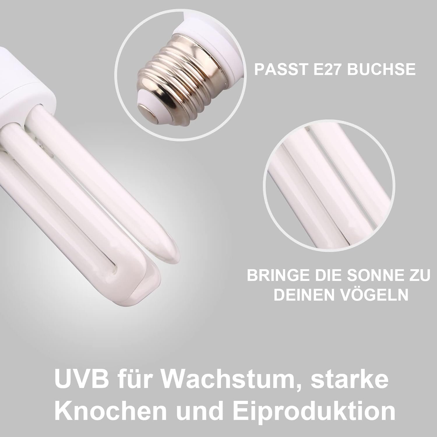 UVB-UVA-Vogellampe – Vollspektrum-UVB-Kompaktvogellampenbirne ermöglicht es Vogelhaltern, ihre Vögel mit echtem Vollspektrumlicht, einschließlich UVB und UVA, zu versorgen, genau wie in ihrer natürlichen Umgebung