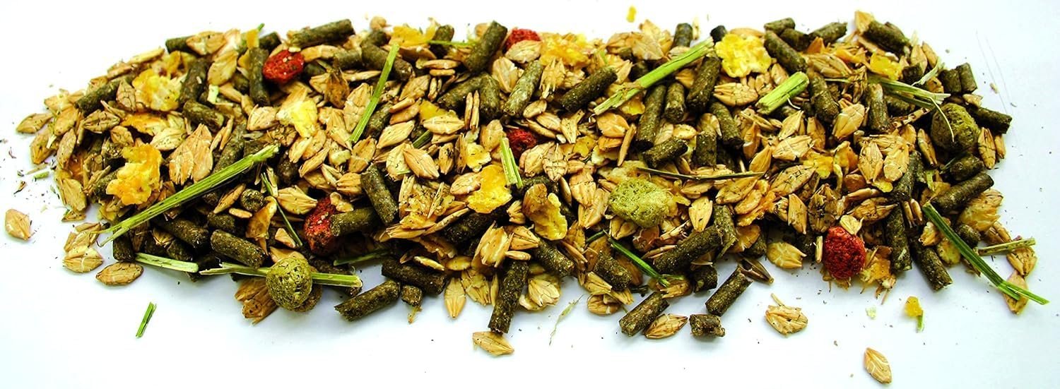Ein Müsli für alle Pferde, insbesondere zur Getreideergänzung. Getreidefutter für alle Sport- und Freizeitpferde, ohne Hafer mit Luzerneheu zur Verbesserung der Kauaktivität (Speichelfluss). Getreidegehalt ca. 60 %, vollständig mineralisiert und mit Vitaminen angereichert. Reduziert das Risiko von Magenverstopfungen. Ideal für eilige Esser. Zusammensetzung: Gerstenflocken, Weizenkleie, Gerste, Cornflakes, Luzernegrünmehl, Haferschalenkleie, ZR-Melasse, Maisextrudat, Luzerneheu, Calciumcarbonat, Rapsöl, Natriumchlorid, Weizengrießkleie, Magnesiumoxid. Luzerne, Rote Bete, Kräuterextrakte (Knoblauch, Fenchel, Dill, Kreuzkümmel, Petersilie). Analytische Bestandteile: Rohprotein: 11,00 %, Rohfaser: 7,00 %, Rohfett: 3,50 %, Rohasche 7,00 %, Calcium: 1,00 %, Phosphor: 0,40 %, Natrium 0,30 %. Zusatzstoffe pro kg: Vitamin A: 1,8.000 IE, Vitamin D3: 1.800 IE, Vitamin E: 80 mg, Eisen 10 mg, Kupfer 4 mg, Mangan 20 mg, Zink 30 mg, Selen 0,20 mg, Jod 0,10 mg, Kobalt 0 mg