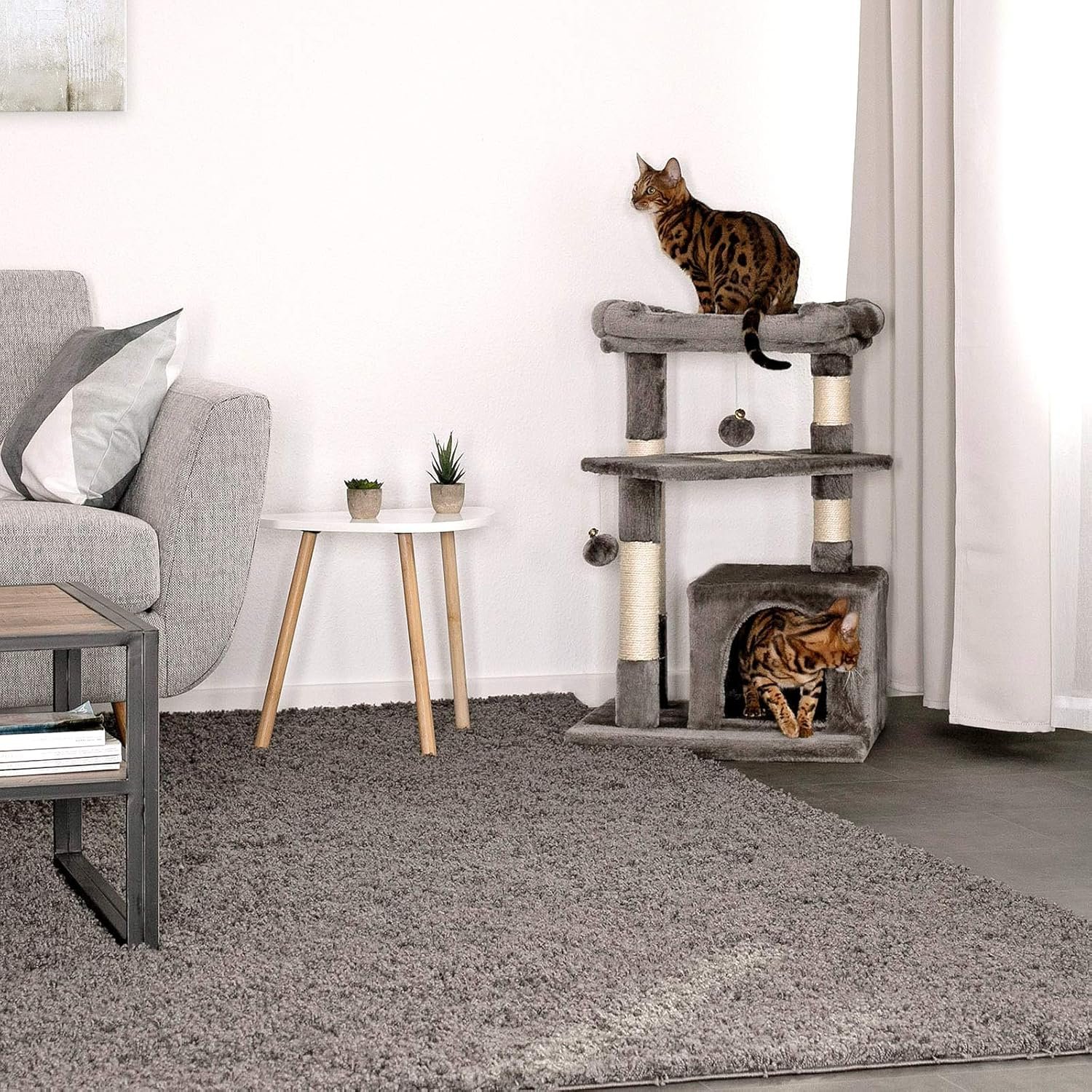 Alle Stämme des Kratzbaums sind mit Sisal ausgestattet, sodass genügend Möglichkeiten für die notwendige Krallenpflege gegeben sind.