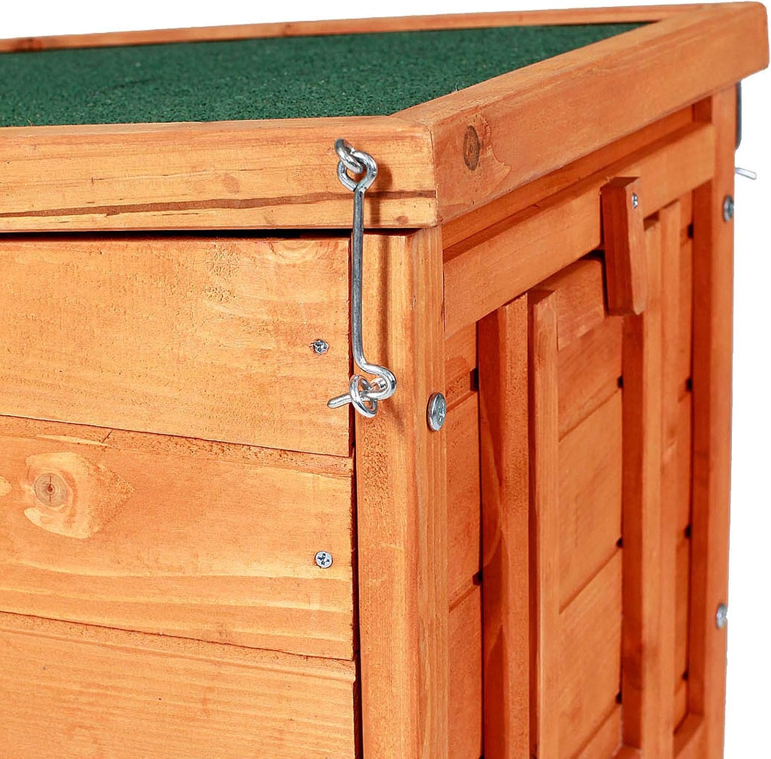 Abmessungen: 43 x 43 x 52 cm Wetterfestes Klappdach Türklappe dient gleichzeitig als Rampe Belüftungslöcher für ausreichende Luftzirkulation Kunststoffkappen an den Füßen zum Schutz vor Feuchtigkeit und Kratzern. Ideal für Nagetiere und Kleintiere. Für den Innen- und Außenbereich geeignet. Hinweis: Bitte achten Sie auf ausreichend Platz und Bewegung, dies kann bei uns bestellt werden.