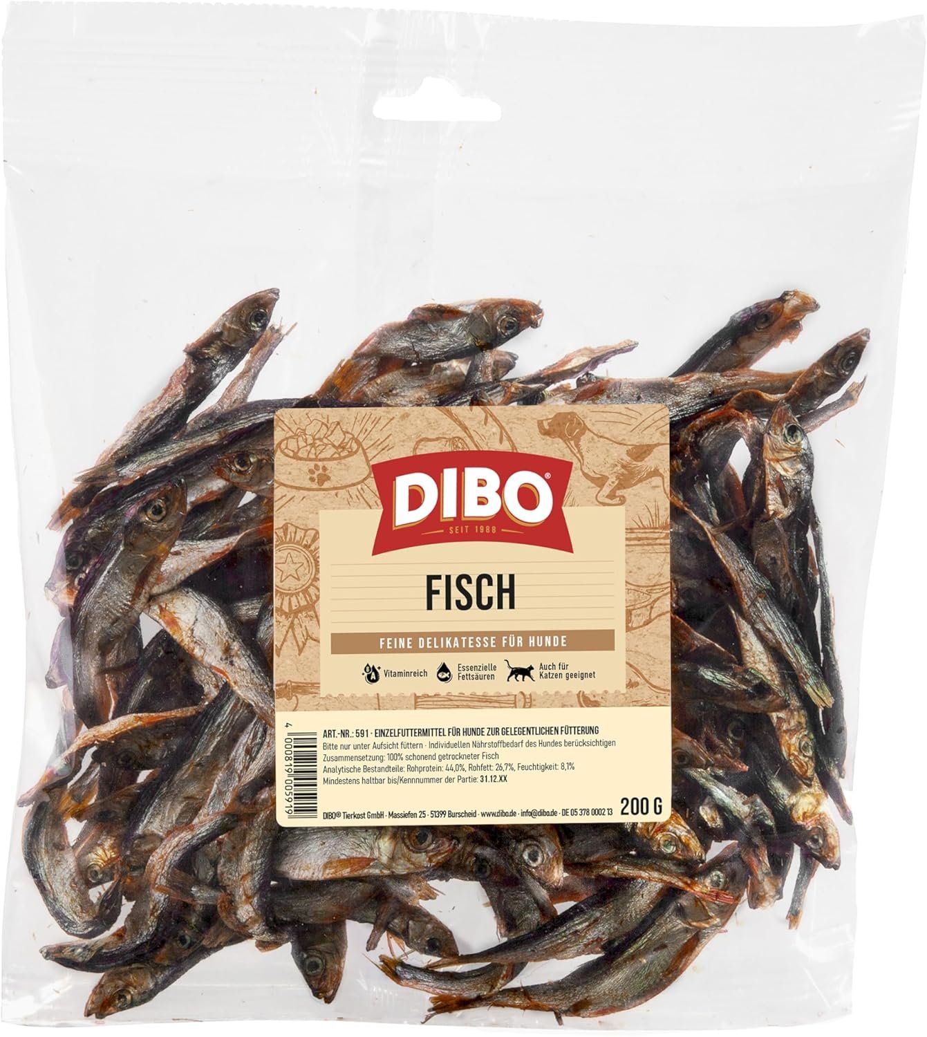 Ideal zur Barf-Ernährung: Dieser proteinreiche Fischsnack von DIBO eignet sich ideal als Ergänzung zur täglichen BARF-Ernährung. Verwenden Sie es als gesunde Beilage zu Fleischgerichten, um den Schüsselinhalt noch nahrhafter und schmackhafter zu machen. Die natürlichen Nährstoffe im Fisch unterstützen das Wohlbefinden und die Vitalität Ihres Hundes und machen jede Mahlzeit zu einem besonderen Highlight.