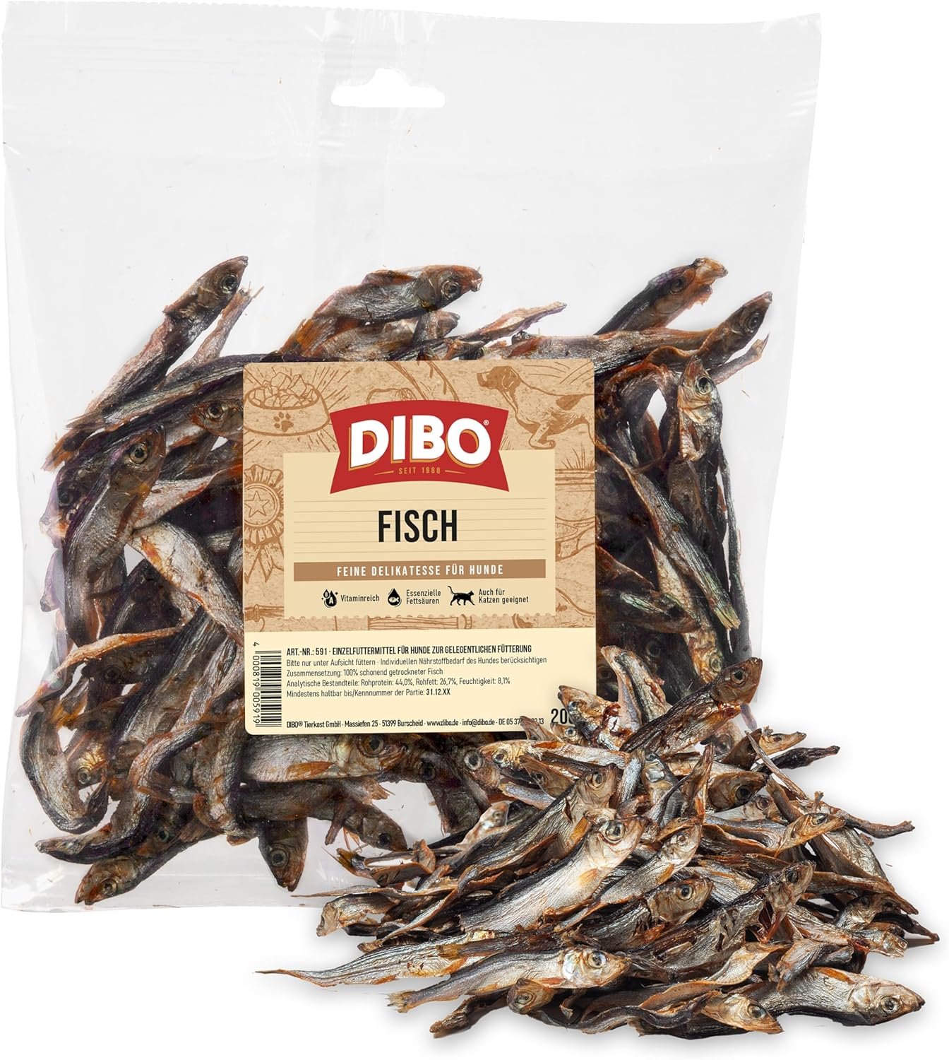 100 % schonend getrockneter Dibo-Fisch, lässt keinen Platz für unnötige Zusatzstoffe und kann ohne schlechtes Gewissen verfüttert werden.
