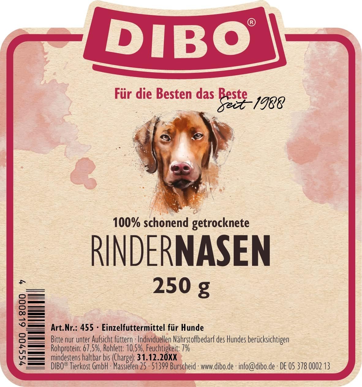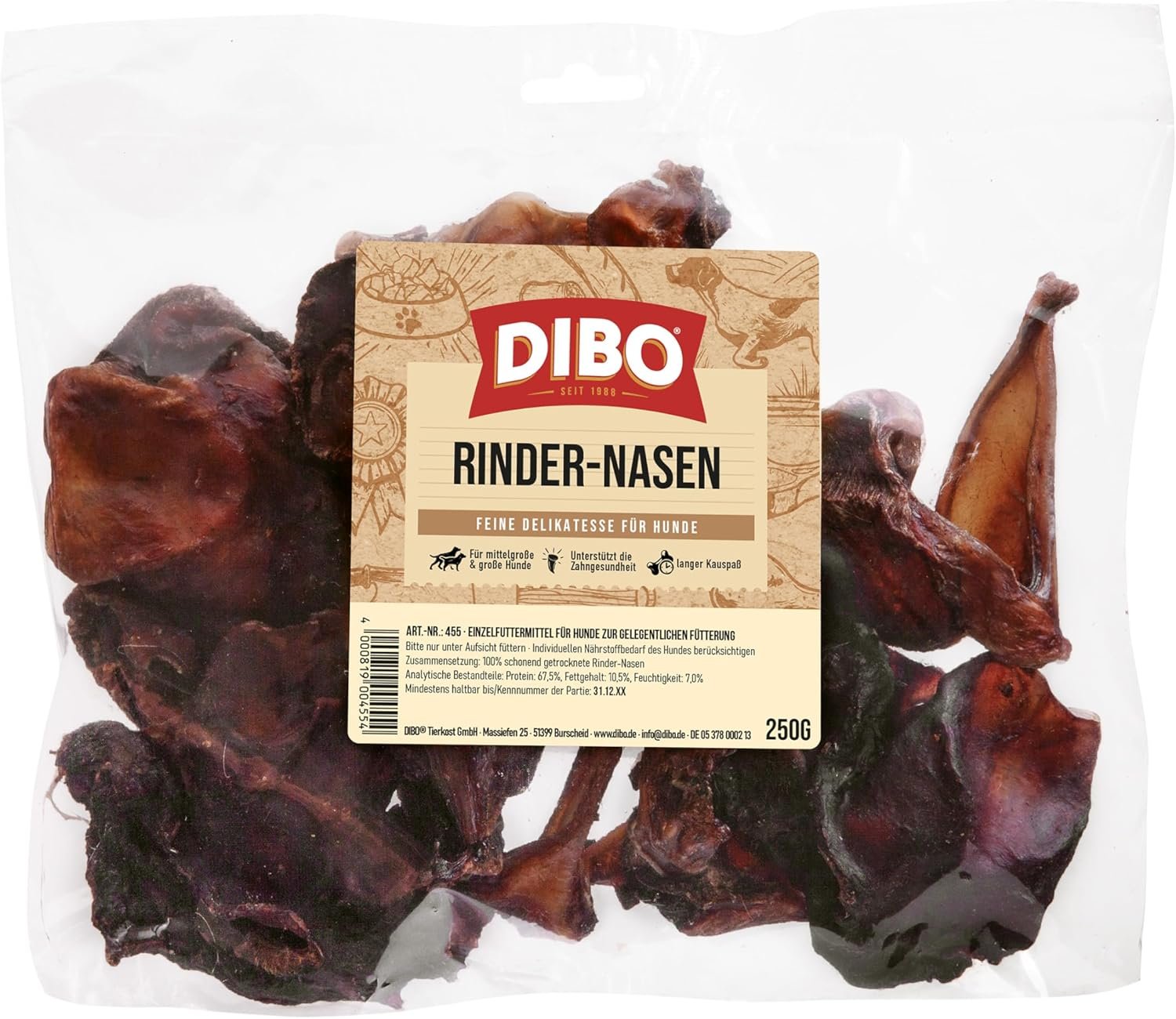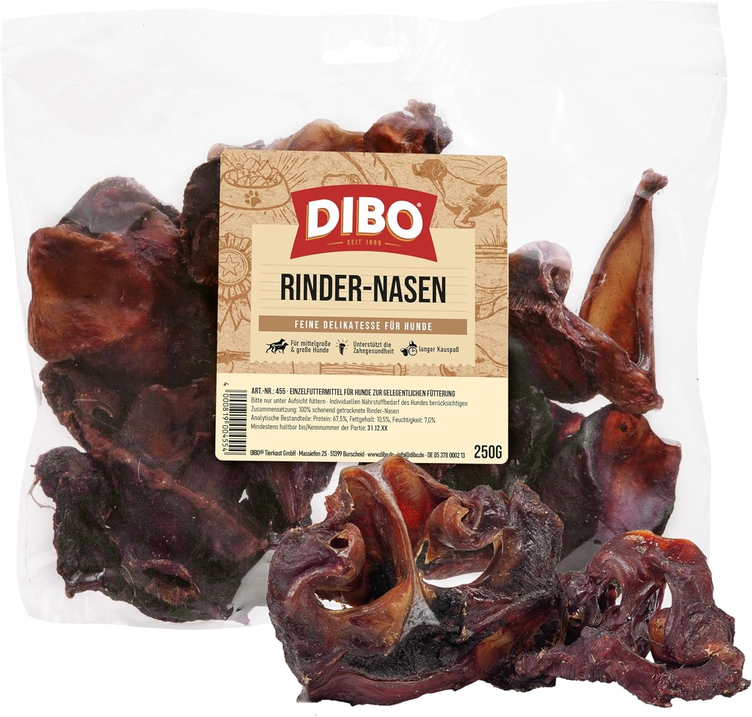 DIBO Rindernasen, 250 g Beutel, der kleine natürliche Kausnack oder Leckerbissen für zwischendurch, Hundefutter, Qualitätskausnacks ohne Chemie von DIBO