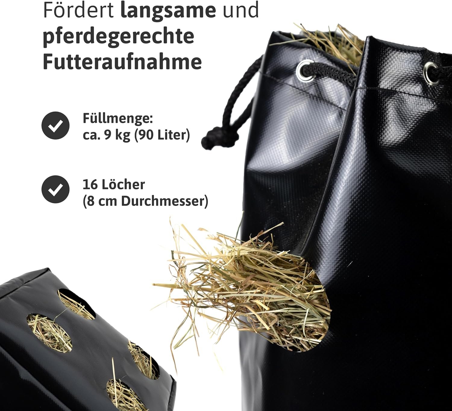 WENIGER FUTTERVERLUST – Hilft, bis zu 15 % Heu einzusparen, da es nicht auf den Boden fällt und verschwendet wird.