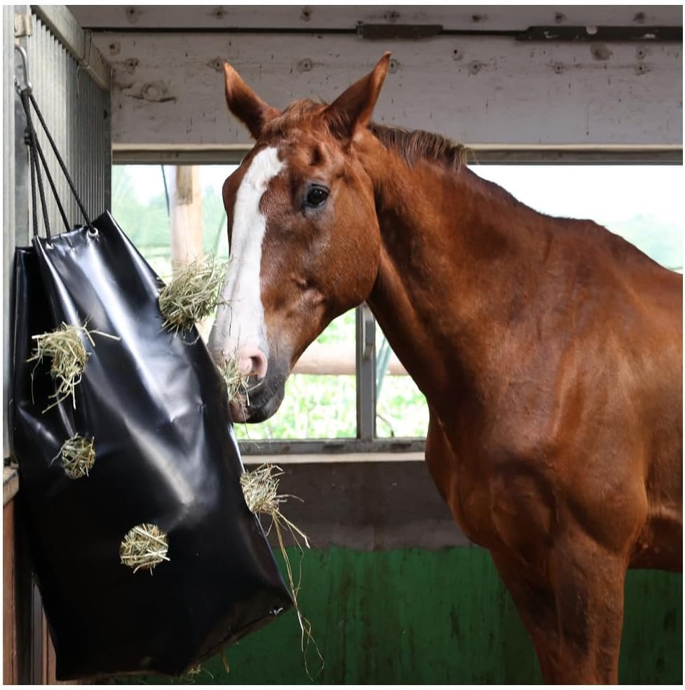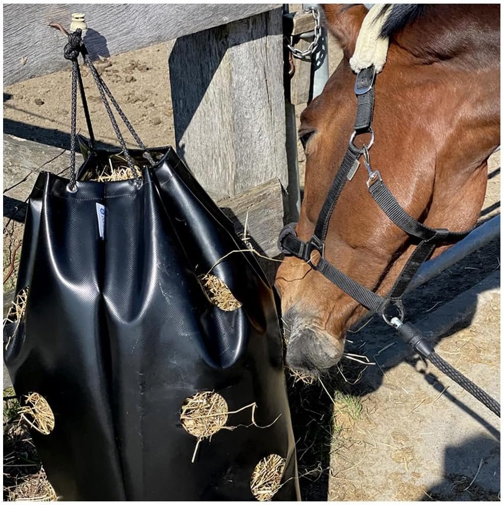Ein fantastisches Produkt für Pferde, um Heuabfälle und Staubbelastung zu reduzieren. Unser Haybag beugt durch seine glatte Materialoberfläche und diversen Löchern Verletzungen im Pferdemaul vor.